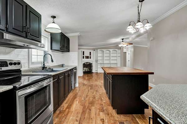 Welcome to this fully renovated 3-bedroom, 2-bathroom double-wide home offering space, comfort, and modern updates on 2.69 beautiful acres. This move-in ready property features a bright open floor plan designed for both everyday living and entertaining, complete with a spacious kitchen island that provides additional prep space and seating. The interior has been completely refreshed with new finishes throughout, along with hardwood and tile flooring that add both durability and style. A wood-burning stove creates a cozy focal point for the living area, perfect for relaxing during cooler months. The home also features a new roof, giving added peace of mind for years to come. Step outside and enjoy multiple outdoor living spaces including a covered front porch, rear porch, and side porch, ideal for taking in the surrounding countryside. The property also includes a 2-car attached garage, an 18x50 shed/workshop that offers excellent space for projects or storage, and a storm shelter for added safety. With plenty of room to spread out and a long list of updates, this property combines country living with modern convenience, making it a fantastic opportunity for those looking for space, functionality, and comfort. *Owner is a licensed real estate agent*