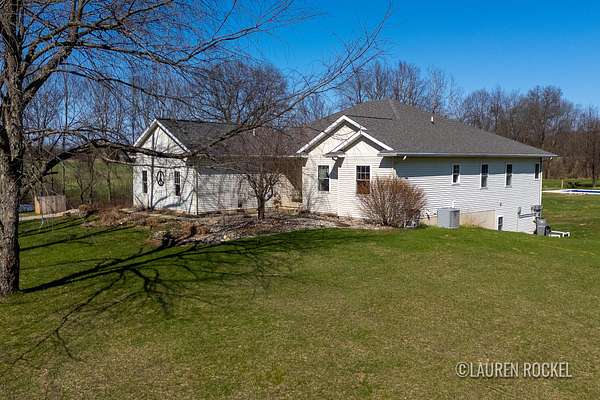 Tucked away on nearly 4.5 acres, this Hastings property offers over 3,000 sqft with 4 bedrooms (and a 5th non-conforming), 3.5 bathrooms and loads of space to spread out. The main floor is bright and open, featuring a kitchen with granite countertops, updated appliances, and a large island that flows into the dining and living areas. Step onto the deck overlooking the saltwater pool, gardens, and fruit trees. You'll also find 3 main floor bedrooms, including a spacious primary suite with an ensuite and walk-in closet, along with another full bath, half bath, and main floor laundry. The walkout basement offers tall ceilings, great natural light, a large living space, full bath, 4th bedroom, non-conforming 5th bedroom, and access to the patio and hot tub. Outside, enjoy a brand new saltwater pool, solar system with battery storage, sauna, greenhouse, multiple garden areas, and a huge polebarn (24x48) Updates include water heater, HVAC, A/C, water filtration system, appliances, and more!