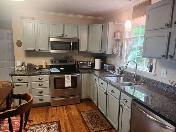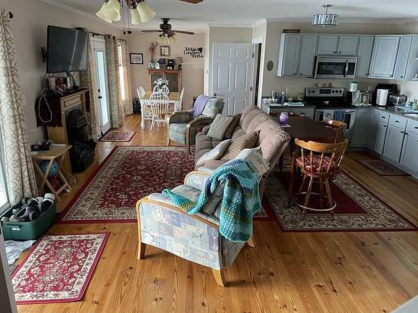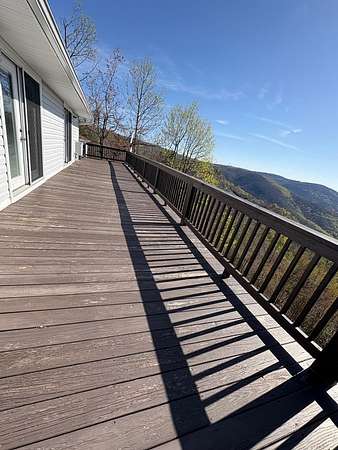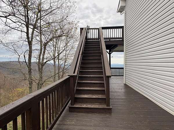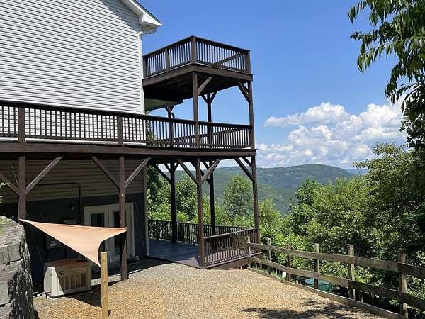 PRICED BELOW RECENT APPRAISAL. Beautiful views of the Piedmont, Appalachian & Blue Ridge mountains greet you as you arrive home. Enjoy the views from every level and from the abundant open or covered deck areas. With seven custom-made French Doors, there is no need to turn on any lights until the evening. The natural lighting from the piedmont shines through almost every room. The kitchen, living room and dining room, with beautiful wood flooring, make up the open-floor plan on the main floor, ideal for todays lifestyle. Upstairs, you'll find the overly-large primary bedroom suite and upper deck, both of which take advantage of the scenery and phenomenal sunrises as they shine right into your bedroom. The lower level is completely finished with two bedrooms, a full bathroom, a separate pantry with adjustable shelves and another Storage area for the h/w heater and a second refrigerator. Each of the three floors has a full bath with the washing machine and dryer hidden in a closet in the main floor bathroom. The updated kitchen has stainless steel appliances and granite countertops. The double-sided refrigerator ('21) and the counter height table with 4 barstools provide for cozy and comfortable meals. The 2100 sq ft. of decking (3 levels)have been recently stained. The well maintained home offers a whole-house back up generator ('23). The home is being sold partly furnished. The detached 5 car garage with a full clear spanned basement area was added in 2018 and it too has a gorgeous view. The garage door is wi-fi accessible for convenience. The lower level can be used for vehicle storage or will make a great workshop. A new roof was put on in '20, and a screened front porch and storm door in '21. There are ceiling fans in every room, a propane burning fireplace and an storage shed which are just a few more bonuses that come with this beautiful home. Chalet High is only 6-7 minutes to Fancy Gap and I-77. It's about 20-25 to Galax, Hillsville & Mt. Airy.