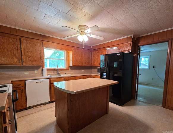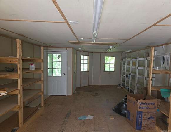 Enjoy oasis on over 10.5 acres in the Social Hill community & go fish in the spring-fed pond! This 1600+ square foot home features custom cabinetry and shelving throughout. Carpets have been removed to expose subfloors, which are in fine shape. Put your touch on it, and this 3-bedroom, 2-bathroom house could be your Forever Home. Metal roof is ~10 years old, with 40+ years of life left. All new insulated windows, updated plumbing, HWH 2019. Washer, dryer, refrigerator, and two part-full propane tanks convey. Two carports, a shop, a garage, underground storm shelter, and a craft cabin offer plenty of additional space for activities. Property is on public water, but also has a well. Once well pump is replaced, this place would be largely self-sustaining.