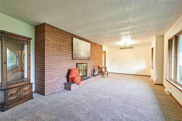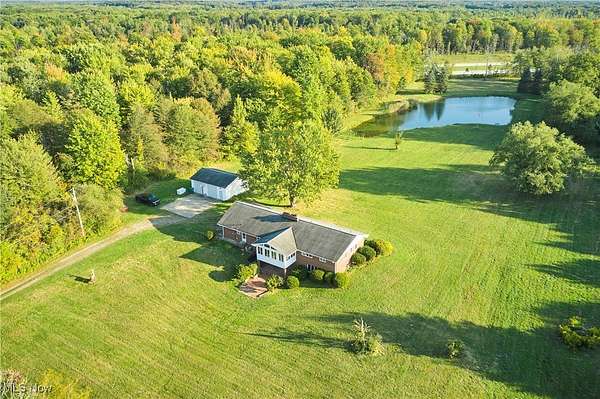 A Rural home with Suburban Amenities in Saybrook! This sprawling 3200 sq ft Ranch is a dream come true! Sitting on 27 acres with public water and sewer located within minutes from Rt 90. Once pulling 700ft up the tree lined driveway you will feel immediate tranquility. Surrounded by trees and privacy. Schedule enough time to take it all in. The Fruit Trees, not one, but TWO large, stocked ponds; one with park like benches and the secondary pond hidden by the thicket of trees. Down the trails you will find an Oil Well with Mineral Rights that will transfer with the sale of the home. Plenty of outdoor storage space offering a two-car attached garage and a pole barn. You will enter the home in wonderment at the brick gas fireplace in the kitchen/dining room, the built in grill and wood beams along the ceiling complimenting the fresh paint, new vinyl floors and light fixtures throughout the first floor. Immediately off the kitchen is a cozy 4 seasons room with new carpet. Entering the living room, you will find the fireplace is double sided and makes for cozy evenings while being captivated by the view through the picture window and comfort of the new carpet and paint. The first floor offers 3 bedrooms with fresh paint, 2 full & 1/2 bath with new mirrors, paint and flooring, breezeway situated conveniently between the garage and kitchen and ample closet space throughout. Down the stairs you will find a fully finished area with walk out access to a patio, gas fireplace, bar, 1 bedroom, 1 full bath, laundry room and storage rooms. This bright and welcoming lower level is an entertainers dream with unlimited possibilities! This home has a secondary driveway on Austinburg Rd.