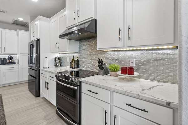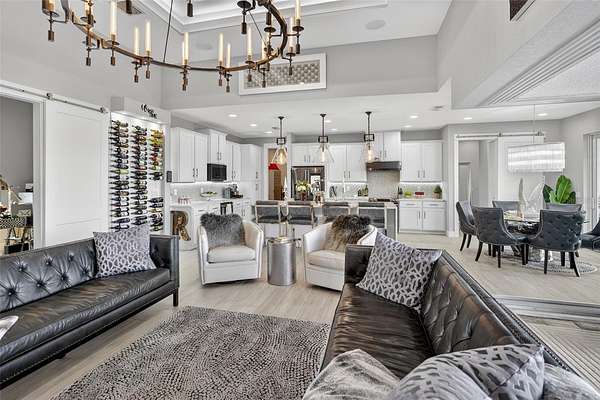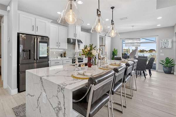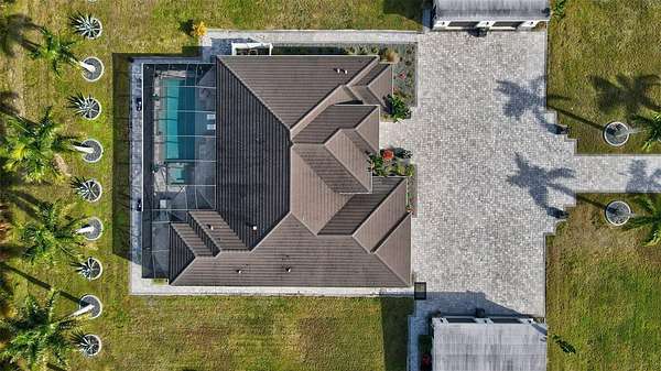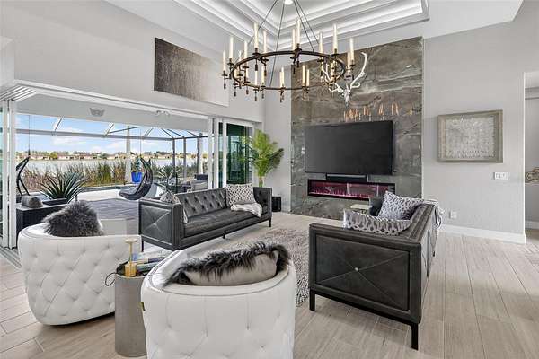 Custom built in 2019, this exceptional home sits on 2.37 fully fenced acres offering privacy, mature palms, and open space, conveniently located near I-75, and Punta Gorda. The residence offers 2,882 sq ft under air with an open concept design featuring a spacious kitchen with quartz countertops, soft close cabinetry, upgraded appliances, tray ceilings, and recessed lighting, flowing into the living area with an electric fireplace.