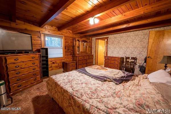 Discover peace and space with this log cabin-style home set on 5 beautiful acres. Offering almost 2,000 sq. ft the home features 2+ bedrooms with a spacious loft (39.3x14') that could easily be converted into several bedrooms or endless possiblities. providing plenty of room for comfort and flexibility. The property is equally impressive outdoors, with a well maintained pond stocked with plenty of fish. Shed great for storage or could be a party cave, amble room to roam, garden or simply enjoy the peaceful surroundings. Comveniently located on State Route 66, this property offers endless possibilities-whether looking for a private retreat, family home, a lot of versatile living space.