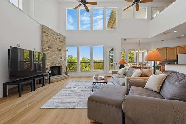 Welcome to your own private treehouse retreat! This custom 3-bedroom, 3-bath home is perched on 2.3 acres of serene, wooded land, with breathtaking views from every angle. Vaulted ceilings and expansive windows flood the open living spaces with natural light, creating a warm and inviting atmosphere. The main floor offers a super convenient setup with two bedrooms perfect for guests, older kids, or an in-law suite, along with a full bath--making daily living or hosting effortless. Upstairs, the primary bedroom serves as a private owner's retreat, complete with its own deck and luxurious bath. Adjacent to the loft area is a media room that could easily be converted into a large fourth bedroom, offering flexibility for your family's needs. Whether you're relaxing in the living room or entertaining on one of the three spacious decks, you'll feel surrounded by nature--especially with the lush, mature trees and peaceful creek at your doorstep. The main deck, just off the living room, is perfect for outdoor dining or stargazing, while the upper loft area boasts its own private deck and beverage center. The third deck, wrapping around the primary bedroom, offers an intimate space with spectacular views. Located in the exclusive Lake Ridge community, this home offers privacy while remaining close to everything you need--just 16 miles southwest of Dallas, with views of Joe Pool Lake, AT&T Stadium, and Globe Life Field. Nearby recreation includes Cedar Hill State Park, Tangle Ridge Golf Club, Lynn Creek Marina on 7,500-acre Joe Pool Lake, and the 164-acre Valley Ridge Youth Sports Complex. Only 30 minutes from downtown Dallas and 45 minutes to either DFW Airport or Love Field, this property is the perfect blend of seclusion, convenience, and flexibility. Your dream home awaits!