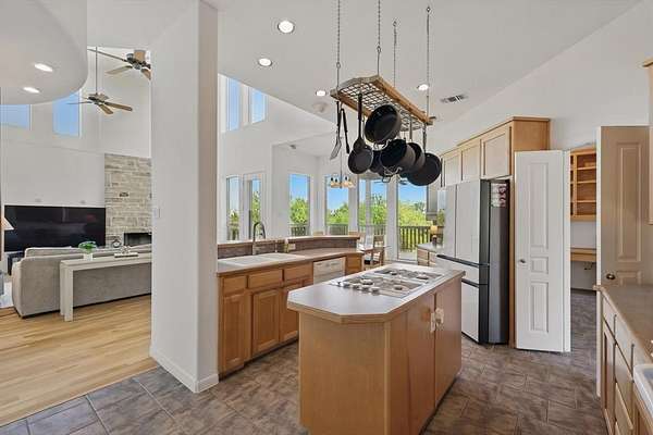 - Built-In Features, Cable TV Available, Cathedral Ceiling(s), Decorative Lighting, Double Vanity, Eat-In Kitchen, Flat Screen Wiring, High Speed Internet Available, Kitchen Island, Loft, Open Floorplan, Pantry, Sound System Wiring, Walk-In Closet(s), Wet Bar