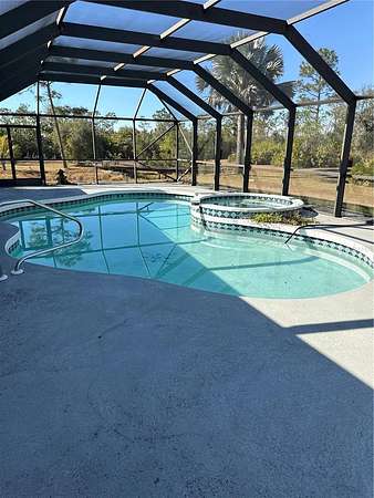 Experience relaxed Florida living in this contemporary home set on 2.3 fully fenced acres in Punta Gorda. Designed with comfort and style in mind, this three bedroom, three bath residence features an open floor plan that blends seamlessly with a spacious eat-in kitchen, creating an inviting setting for everyday living and entertaining. Step outside to your private outdoor oasis, where an in-ground pool with screened enclosure offers the perfect space to unwind or host gatherings year-round. The expansive lot provides a rare sense of privacy and flexibility, with ample room for outdoor activities and animals such as horses. Practical amenities include a two car attached garage along with a separate third standalone garage, ideal for additional vehicles, storage, or hobby use. Combining contemporary design, generous acreage, and a peaceful setting, this property offers a refined yet laid-back lifestyle with convenient access to all that Punta Gorda has to provide.