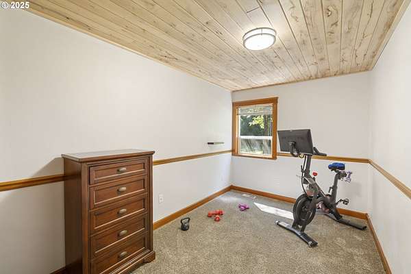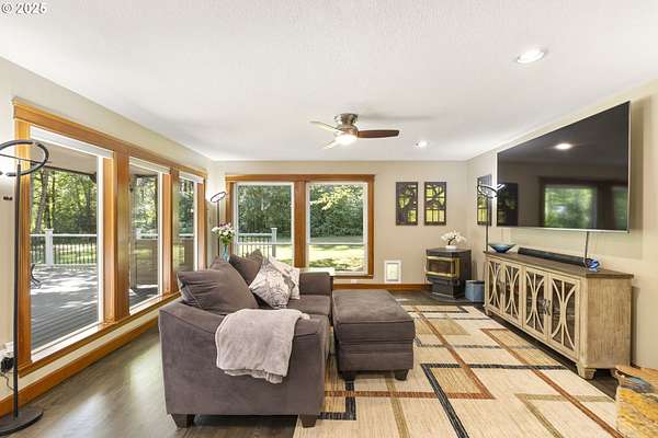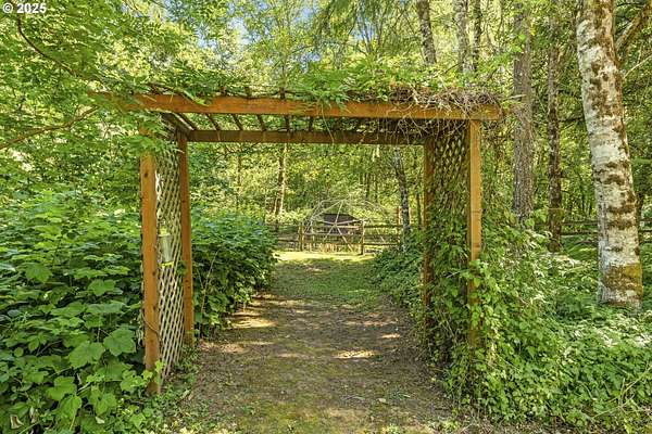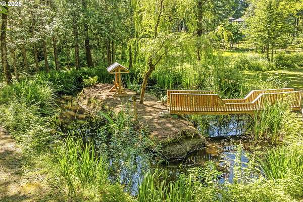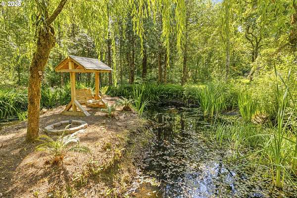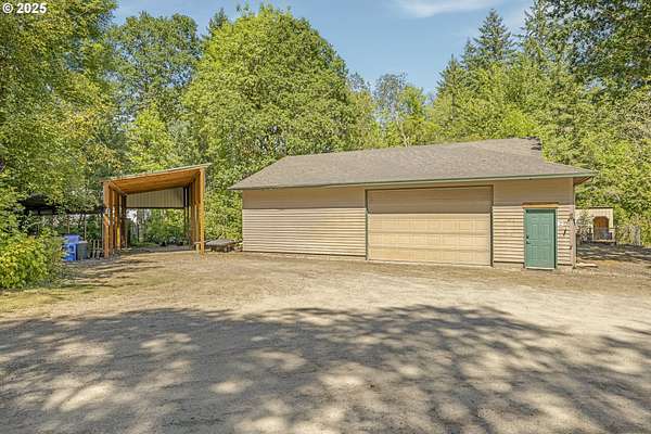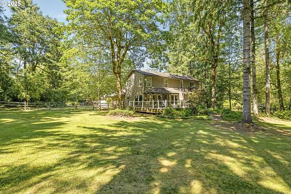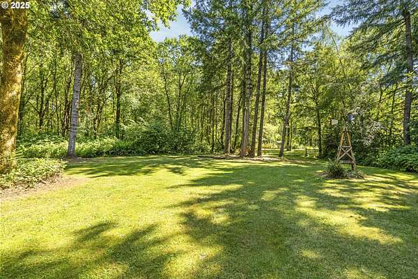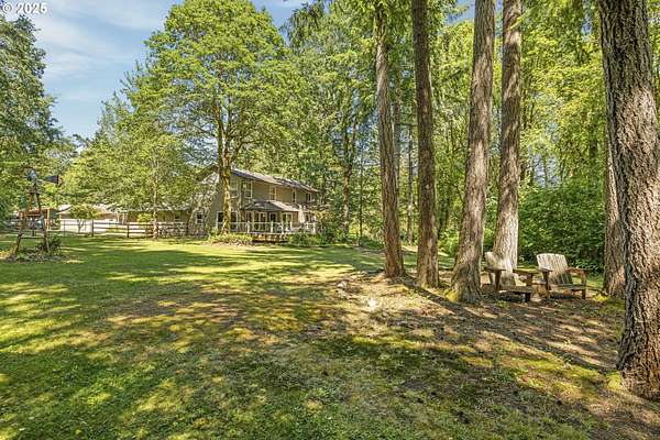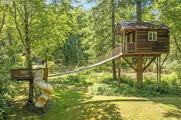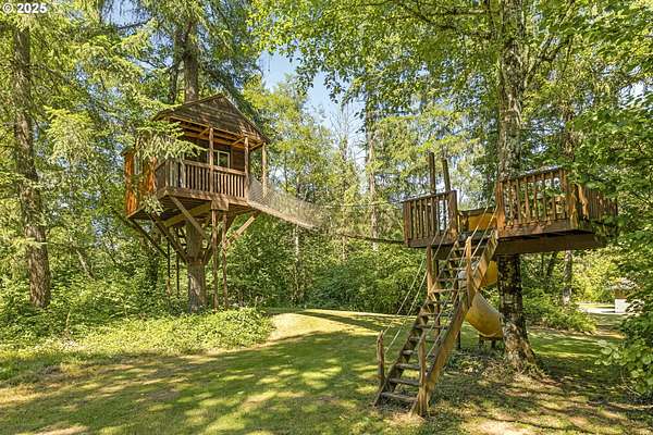 Private and secluded 5-acre park-like property offering a peaceful retreat with something for everyone including a 3-bay shop with electricity, covered RV parking, large garden area, chicken coop, fenced animal area, pond, recreational target practice area, and a tree house complete with slide and walking bridge. Inside, enjoy beautiful hardwood floors throughout the main living areas. The updated kitchen features solid stone counters, stainless steel appliances, and an eating bar that opens to the family room with pellet stove and expansive windows showcasing the serene wooded setting. The primary ensuite includes a walk-in closet and a luxurious spa-like bath that features a European wet room with a large walk-in shower and a stunning soaking tub. New roof to be completed on house prior to closing with an acceptable offer!