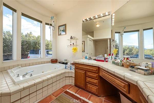 Fabulous, spacious home on 10 acres, nearly all usable land with heavenly views in all directions! Floor plan is open and spacious with Spanish tile in living room with fireplace. A huge back patio with overhang stretches along the entire length of the house. Solar panels are paid-for and included! Indoor laundry room. Many upgrades such as tile roof and fire sprinklers. Outside you'll find a finished workshop/garage with concrete floor, electric, and air compressor line. There's a concrete pad ready for a car-lift behind garage. Original owners - never on market before! Two APNs included in this sale: 3060-022-074 and 3060-022-075 (5 acres each). Zoning is A1 which allows agriculture and horses/livestock. Call or text Brenda at 310-220-5247 for more info!