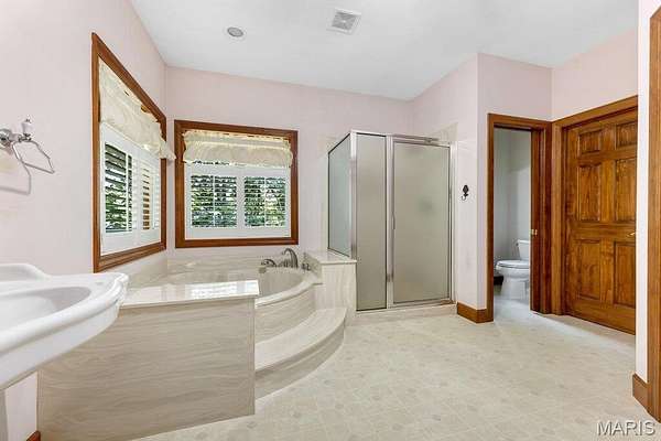 - Bar, Coffered Ceiling(s), Custom Cabinetry, Entrance Foyer, Kitchen Island, Open Floorplan, Separate Dining, Tub, Walk-In Closet(s)