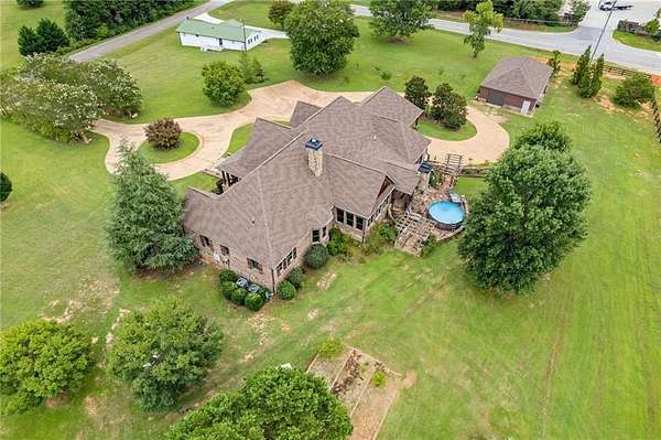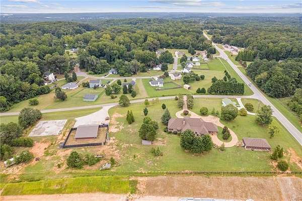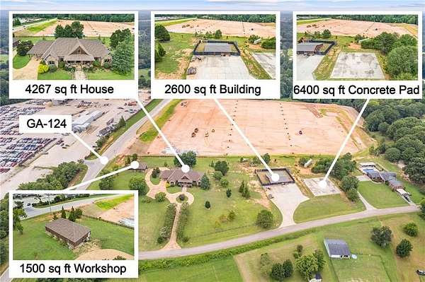 ENDLESS POSSIBILITIES! Amazing opportunity to own this multi-use property in the ever growing Jackson County. PREMIER LOCATION! Primary residence features a 4 SIDES BRICK home with circular driwaway, rocking chair front porch, porte-cochere for convenient covered entry, flagtone patio with outdoor fireplace and built-in grill. Inside find an expansive great room w/stone fireplace, chef's kitchen, 4 Bdrms/3.5 baths, sitting room and more! Additional buildings on the property include 1,500 sq ft workshop and 2,600 sq ft potential guest house or workspace. 6,400 sq ft concrete pad was poured to accomodate additional building with dock high door(s). ALL 3 STRUCTURES FEATURE NEW ROOFS. Situated on 4.66 open acres along Hwy 124 and Jones Road, this could be the perfect location for your next venture!