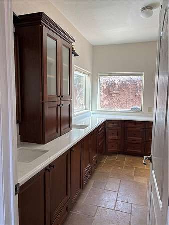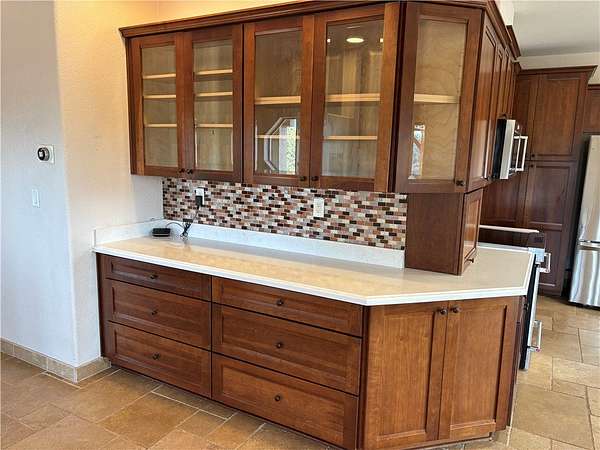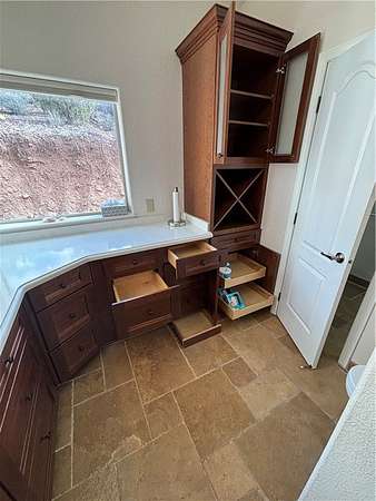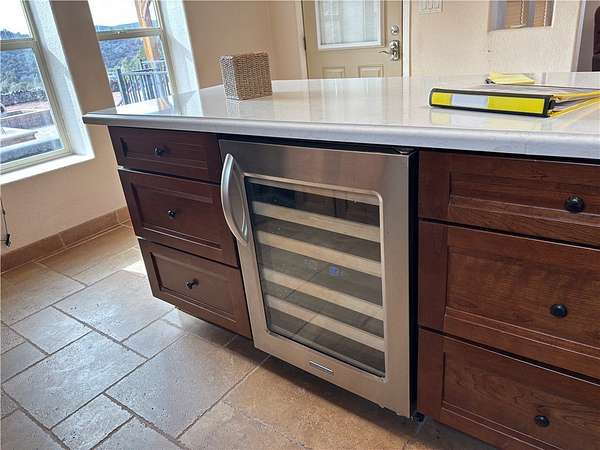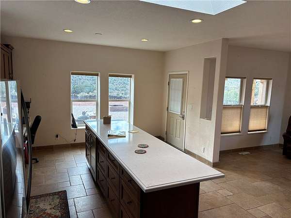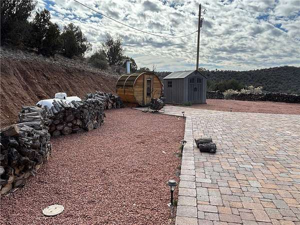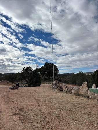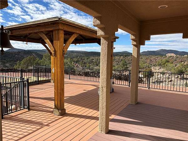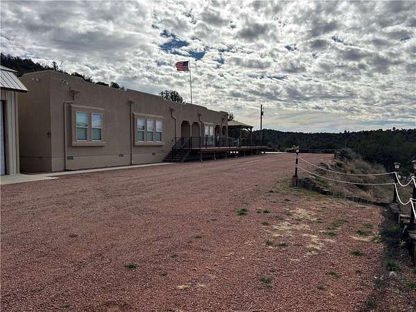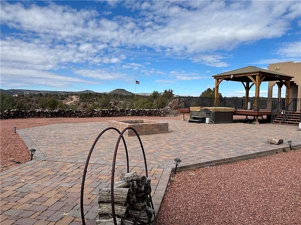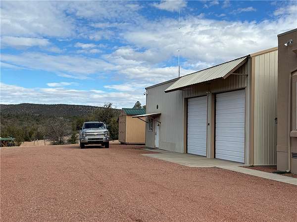 Lots of luxuries in the perfect rural setting, 3/2/4 Large home, wrap around deck, large patio with a Jacuzzi built into the deck, Patio has Sauna, large fire pit, barbecue kitchen area, gazebo with lights and shades.Huge steel garage with luxurious executive office and very modern alternative communication systems, weather monitoring etc. FRESH PAINT, RV pad w full hookups. Additional Shed on the property for out of the way storage. Stargazers paradise on the top of the hill with unlimited views. Additional covered parking for tractor and a government Humvee, RV hookups. This 2100 sq foot SanteFe home has been significantly upgraded, top of the line custom kitchen and bath cabinets throughout in 2018, built in wine fridge and all appliances incl. Travertine Stone flooring in 2019. Addl patio added in 2019, pavers with concrete installed under the pavers. New Quartz countertops throughout make this a spectacular custom kitchen with a double-sized kitchen island (seats 6 easy). Glass front display cabinets face one of the two living rooms, for beverages, glassware displays etc.. Large laundry/pantry area has storage for those once a month grocery shopping adventures. Property is heated and cooled with a traditional forced air HVAC unit. The entire 72 acres is fenced with an automatic open/close ranch gate. This property has a significant amount of hard surface area all around the home and garage, very unusual for a rural property. Addl building pad and second installed septic on the property. Concrete sidewalks, paver patios etc. The views from the property are truly breathtaking, a trip to the top of the hill is a remarkable adventure. The property is very secluded, but only two short miles from the paved I-40. There are water hydrants sprinkled throughout the property. The flagpole has significant lighting so your flags can fly after dark! The large steel garage has a climate controlled safe room within it. There are security cameras and cell repeaters/extenders on the property. UPS, FedEx deliver to this home. USPS at the cluster boxes you pass on the way to the property. Private well is located near the garage. There is real power to the home and the garage with a 22kW backup generator. Real power could be extended to the other pad and well could be shared. Motivated Seller bring all offers! This MUST be seen to feel the peace, silence & serenity.