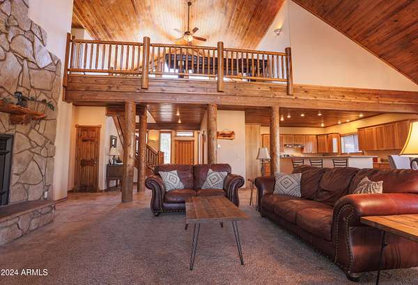 2935 Buckskin Canyon Road, Heber, AZ 85928 Retreat to this stunning 6-bedroom, 5-bath mountain sanctuary, where rustic character blends seamlessly with modern luxury, including a fully renovated guest house. Set on a beautifully landscaped 2-acre lot, this property offers unmatched privacy and serenity, perfect for entertaining, enjoying the great outdoors, or creating your dream vacation escape-or full-time mountain haven. Main Home Highlights: Open-concept kitchen and living area with Hickory cabinets, quartz countertops, stainless steel appliances, and a breakfast bar for effortless entertaining. Separate dining area perfect for hosting family and friends. Cozy cabin-inspired design featuring a fireplace in the master bedroom, additional bedroom, and living room. Spacious loft area ideal for a private retreat, office, or entertainment space. Outdoor Oasis: Spacious yard with mature landscaping perfect for enjoying Heber's crisp mountain air. The property extends past the back fence to a scenic wash for added privacy. Functional hot tub included for ultimate relaxation. Seller's detailed garage plans will transfer with the sale. Fully Renovated Guest House: A private retreat for family or friends with modern finishes and ample space to unwind. Equestrian & Additional Features: Horse-friendly property with access to National Forest trails. Underground, owned propane tank for efficiency and convenience. Furniture available for purchase outside of escrow. Water service provided by Buckskin Artist Community. This exceptional property combines luxury, functionality, and mountain living at its finest.This Heber home truly has it all. Don't miss the chance to own this stunning mountain retreat in the coveted Artist Draw Community!