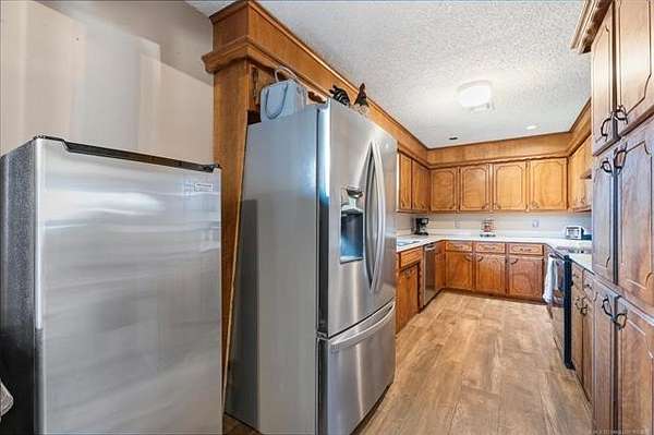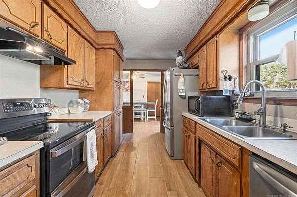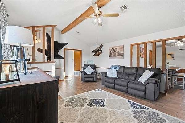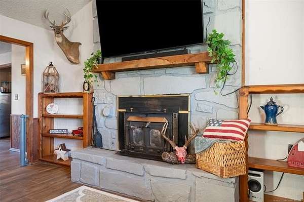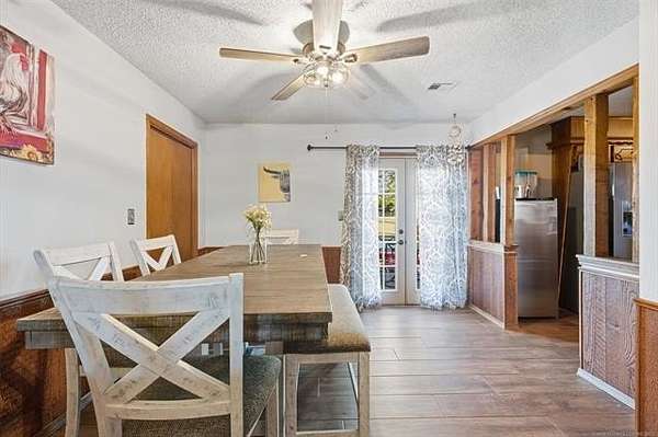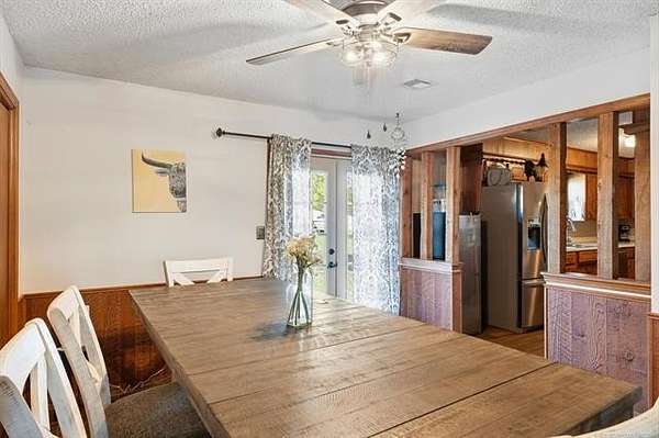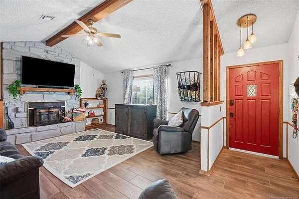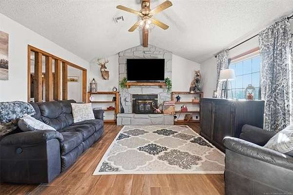 Experience the joy of country life with this beautifully updated 3 bedroom 2 bath home set on just under 2 acres. This small farm is ideal for those who love a peaceful rural setting - complete with space for goats, chickens and a garden. Inside, you'll find a welcoming home featuring stainless steel appliances, wood looking ceramic tile, and cozy carpeted bedrooms. A stunning sandstone wood-burning fireplace adds warmth and charm to the living area. Fresh paint and ceiling fans in every room provide comfort throughout, along with an updated master bathroom. The home also features a metal roof and energy efficient windows that are only 3 years old. Outside, enjoy the convenience of a 30X40 shop with a 10 foot covered porch, two entry doors, and two roll-up garage doors. The shop includes electricity, a mini-split system, and new spray foam insulation perfect for projects, storage, or livestock needs. With modern updates and plenty of country charm, this property combines comfort, functionality, and true small farm living. Don't miss this one!! Professional Photos Coming Soon!