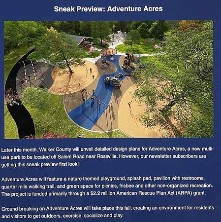This park, located off Salem Road in Rossville, will feature a splash pad, inclusive playground, pavilion with restrooms and a quarter mile walking trail.