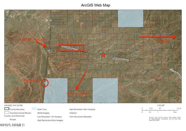 From Highway 180 in Valle, turn right (north) onto Highway 64 toward the Grand Canyon. After approximately 3 miles, you'll see the South Rim Ranch sign on the right-hand side of Highway 64-turn right there. Stay on South Rim Ranch Road for 1.8 miles. The property will be on the left-hand side and is easily recognizable by the white fence surrounding it. It's the only house with a fence!