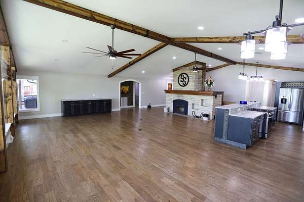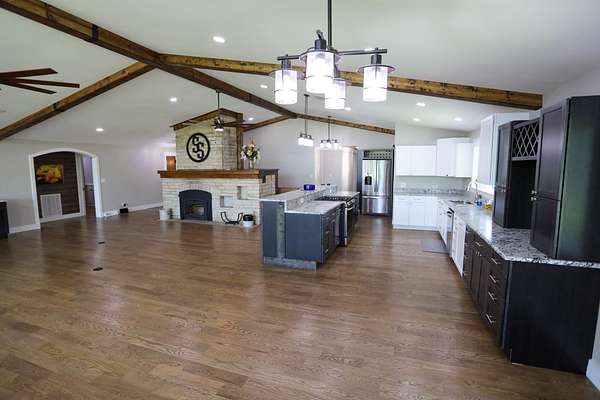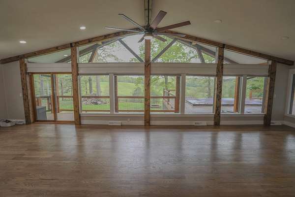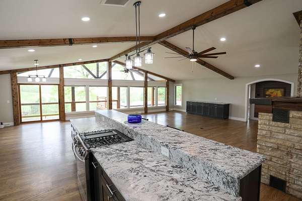 The Residence: Luxury Perched Above the Valley The 2,990 sq. ft. home has undergone a comprehensive, top-to-bottom renovation, offering 4 spacious bedrooms and 3 full bathrooms. Perched atop a ridge, the home overlooks the lush valley below, providing panoramic views of your private domain. The interior is a showcase of meticulous hands, featuring stone countertops, a gourmet kitchen with a gas downdraft cooktop, and custom soft-close cabinetry. With all-new stainless appliances, a wood-burning firebox for those crisp Ozark evenings, and a generous floor plan, this home offers a sophisticated sanctuary in a rugged landscape.
