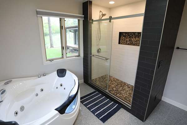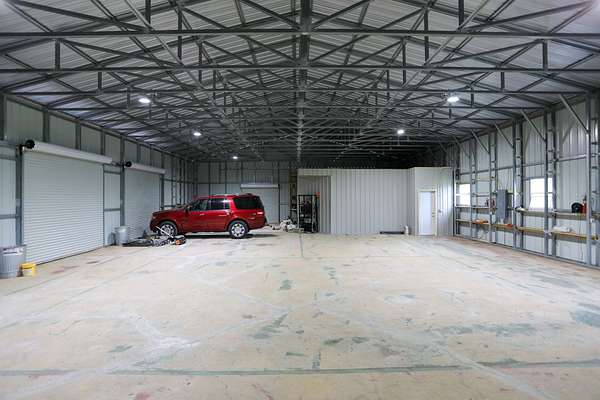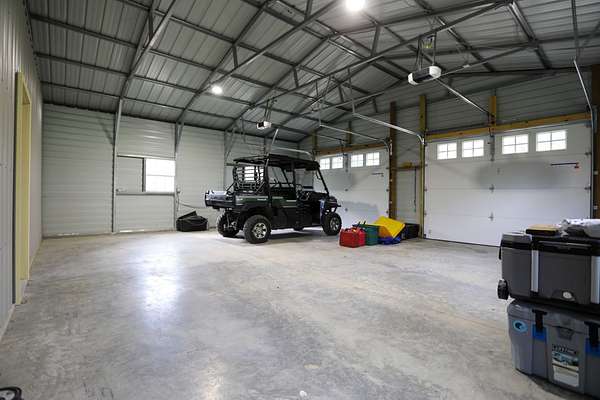 The Garage: A newly built, 45x30 garage featuring a 24' parking bay, a 12x12 mower bay, and over 400 sq. ft. of insulated and finished workspace.
