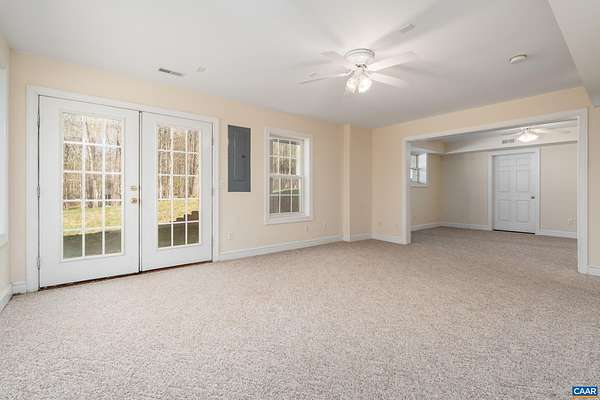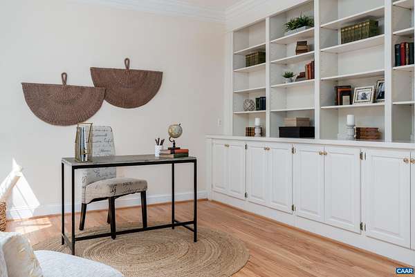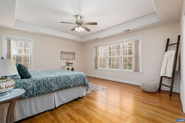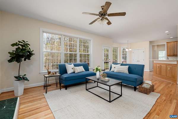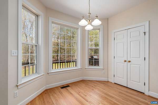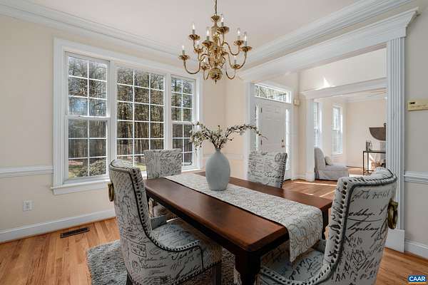 OPEN SAT & SUN, MARCH 11th & 12th 1-3pm. Your ideal Western Albemarle home on 2 open, flat acres on a quiet dead-end street! Step inside from a circular driveway to a bright & inviting, easy living floor plan with newly refinished hardwood floors on the main level. The foyer is flanked by a home office with a wall of bespoke built-ins and a formal dining room. Family room with gas fireplace flows into an eat-in kitchen with breakfast bar, stainless appliances, pantry closet and bay breakfast nook. A versatile main level room with full bath, closet and door to the deck is perfect for main level bedroom suite, second office, or playroom. Upper level primary en suite with tray ceiling and tiled bath with dual sink vanity, glass enclosed shower, soaking tub & walk-in closet. Convenient laundry room + three more beds and hall bath upstairs including a bonus room over the garage w/ extra storage. All bedrooms w/ walk-in closets! Walkout basement features a nice size rec room, full bath, wet bar & flex space perfect for a gym or home theater. Enjoy dining outdoors on the big deck. Set up your yard games in the fabulous yard complete with basketball hoop, play set, herb garden & tool shed. Get ready to be amazed by the starry night skies!