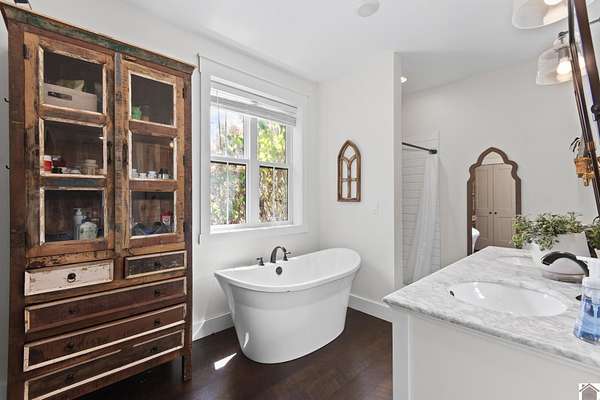 - Circuit Breakers, Closet Light(s), Double Vanity, Separate Shower, Soaker Tub, Walk-In Closet, Washer/Dryer Hookup
