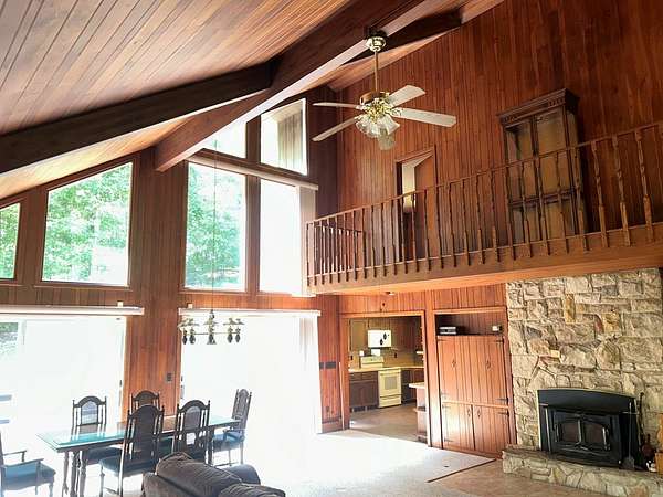 Extremely rare offering of deep water Clarion River property with three separate lots fronting the river. Main offering is a custom saltbox style home with tons of natural light, open cathedral area and charm. Large wrap around deck, two car garage in basement and a separate 2 car detached garage. Interior has hardwood flooring, cherry walls and ceilings with stone fireplace in great room. Home sets on a 1.09 acre lot with river frontage. Adjacent parcel is 0.83 acres and has the two car detached garage with river frontage. The icing on the cake is a 24' x 26' pavilion at river level at 226 Old Route 322. This pavilion needs some work, but has electric available (currently off) and a septic holding tank. This property was once used as a restaurant when the old bridge was located at this location. Easy access and great river frontage. Truly a unique property with easy access to Route 322, Route 66, Route 68 and Interstate 80.