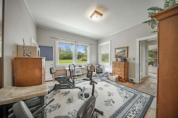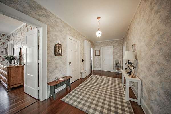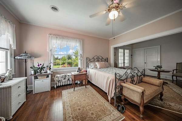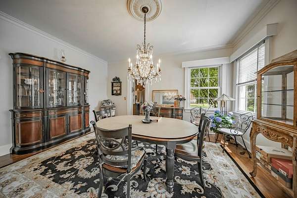 - Bookcases, Built-In Features, Ceiling Fan(s), Crown Molding, Elevator, Entrance Foyer, High Ceilings, Natural Woodwork, Pantry