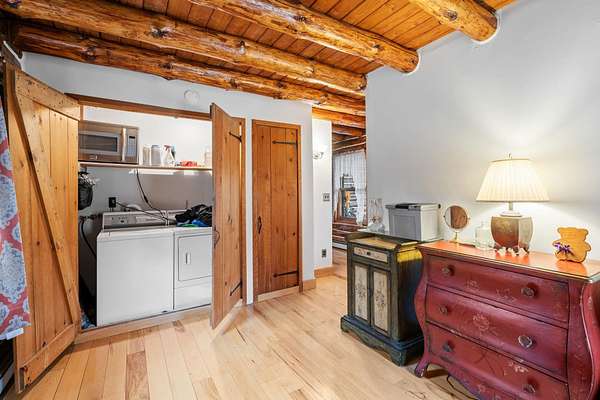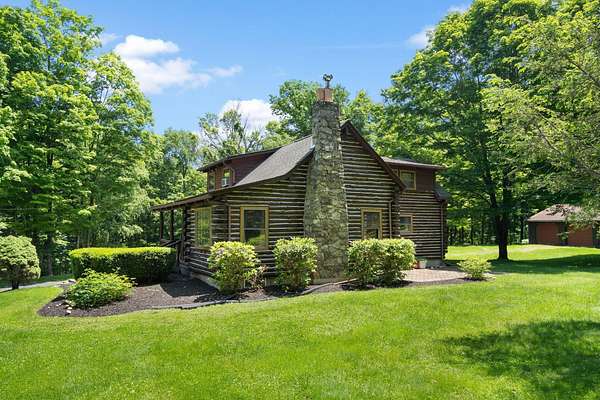 TOWN OF CRAWFORD LOG HOME SITUATED ON 25+ ACRES OF SERENE WOODED LAND. This charming 3-bedroom, 2-bathroom log home is situated in the Town of Crawford, within the Pine Bush School District. Conveniently located just 10-15 minutes from local restaurants, shopping centers, and essential services such as banking and postal facilities, this home offers both comfort and accessibility. Surrounded by nature, it is near several parks, including the Crawford Walking Trail and Winding Hills County Park. Major highways, including Route 17K, Route 302, and Interstate 84, provide easy access to Orange County Airport and Stewart International Airport, making travel and commuting effortless. The location is just the start check out the amenities this home has to offer starting with the kitchen combining classic craftsmanship with contemporary convenience. Deep green cabinetry with black iron hardware is complemented by butcher block style countertops, offering both style and function. A farmhouse sink sits beneath a row of large windows, allowing natural light to fill the space while providing a view of the surrounding trees. Exposed log beams and wood-paneled ceilings add to the warm, rustic aesthetic, while stainless steel appliances integrate modern practicality. The open-concept living and dining areas highlight the home's impressive architecture. Vaulted ceilings with exposed log rafters create an airy, spacious feel, while large windows frame the natural scenery. The dining space sits beneath a classic chandelier, while the adjacent living area is anchored by a floor-to-ceiling stone fireplace, complete with a wood-burning stove. The natural wood flooring enhances the seamless flow between spaces, emphasizing the home's log cabin character. The main level bathroom features a modern-rustic blend of design elements, including a sleek vanity with matte black fixtures, a bold patterned tile floor, and a tiled shower with classic subway tile detailing. Upstairs, the lofted ceilings continue into the bedrooms, where exposed log beams create a distinctive, cozy atmosphere. Large windows allow for ample natural light, while the combination of wood and neutral-toned walls maintains a balanced aesthetic. Plush carpeting provides warmth underfoot, and built-in storage adds functionality to the space. The second bathroom reflects a refined yet rustic style, featuring a modern black vanity, a crisp white sink, and a walk-in shower with elegant marble-patterned tile. The contrast between the wood ceiling and the contemporary finishes gives the space a refined yet cohesive look. The property extends to an expansive backyard, bordered by mature trees for privacy and natural beauty. A secondary outbuilding offers additional storage, workspace options or an additional two car garage. The peaceful setting, combined with the home's well-crafted details and thoughtful updates, makes this property a timeless retreat. This will not last long on the market, don't delay, call now for your showing!!!