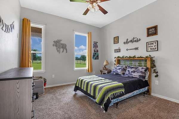 Step into East Texas charm at its finest. This stunning modern farmhouse just outside Alto, TX sits on 2.79 peaceful acres and offers the perfect blend of custom design, smart upgrades, and country living. Inside, you'll find an open-concept layout with luxury vinyl plank flooring, granite countertops, walk-in pantry, dry bar with beverage cooler, pot filler, gas stove, and built-in electric oven. The oversized primary suite features a spa-style bath with soaking tub, double walk-in shower, and massive closet. Two guest rooms share a Jack and Jill bath downstairs, while a private upstairs suite has its own full bath and walk-in closet. Outside offers nearly 1,500 sq ft of covered patios and carport space, a 30x50 spray foam insulated shop with a 12' roll-up door and enclosed room, plus a whole-home Generac that powers both house and shop. Need more land? 10 additional acres are available to purchase. This one has it all. Schedule your showing today!