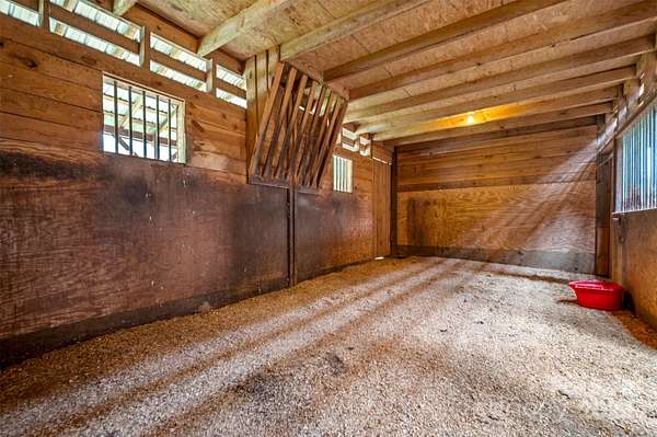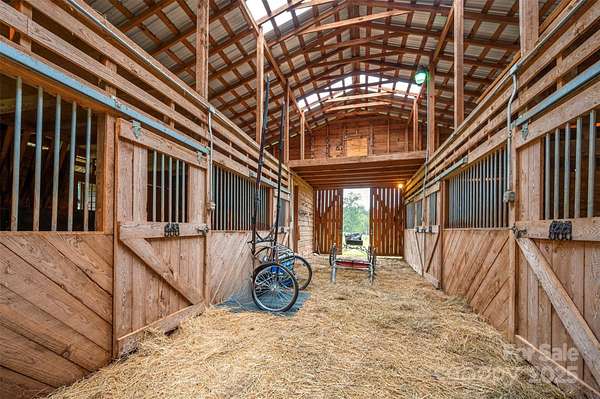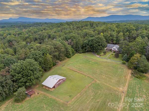 Welcome to your private retreat in the heart of Western North Carolina! Set on 31.32 acres with long-range mountain views, this property combines comfort, privacy, and equestrian amenities. The site-built 36x36 horse barn features three 11x12 stalls, plus a 24x36 mare-and-foal stall that can be partitioned to create up to five stalls. A tack & feed room, hay area, a storage loft, and four separate pastures provide everything you need for horses or other livestock. A beautifully flowing creek winds through the land, adding to the serene setting. Step inside to discover a bright, open floor plan with expansive windows that frame breathtaking views of sunsets and sunrises. The 3-bedroom, 2 1/2-bath home features a welcoming layout, with a great room anchored by a cozy fireplace, open to the dining area, and flowing directly onto a spacious screened-in porch-perfect for relaxation. The large kitchen, complete with a breakfast nook, provides ample space for gathering. Upstairs, a family room with vaulted ceilings creates a bright, open space. The primary ensuite is a true getaway with a massive closet, garden tub, and shower. An oversized 3-car garage completes the home, blending function with comfort. The garage has plumbing in place, ready for an additional primary suite if desired. This property offers privacy, the beauty of the foothills, and all the features for those seeking both a home and an equestrian lifestyle. Conveniently located near Charlotte, Asheville, and Hickory, yet tucked away for ultimate privacy. Only 20 miles from Tryon Equestrian Center. This horse farm is a must-see!