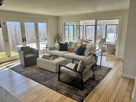 Escape to a stunning summer/winter retreat in Southern Vermont, featuring 4 spacious bedrooms and 3.5 baths. Nestled in the heart of nature, this property offers breathtaking mountain views, perfect for relaxation and outdoor adventures. Open-concept living/kitchen area with plenty of seating, a wood burning fireplace, and panoramic mountain views. Kitchen is fully equipped with modern appliances, perfect for family meals and entertaining. 3 bedrooms located on the first floor with 2 baths, sitting area and laundry. Upstairs boasts kitchen, living room, sunroom, primary bedroom with en suite bath and powder room. Expansive deck and sunroom to enjoy the stunning views and all nature has to offer. Peaceful and private, yet conveniently close to hiking trails, local dining, and shops in Dorset and Manchester. Available: June 1st, 2026 (RENTED: November 1st, 2025 - May 31st, 2026 & August 2026) Price: $6,500/Monthly
