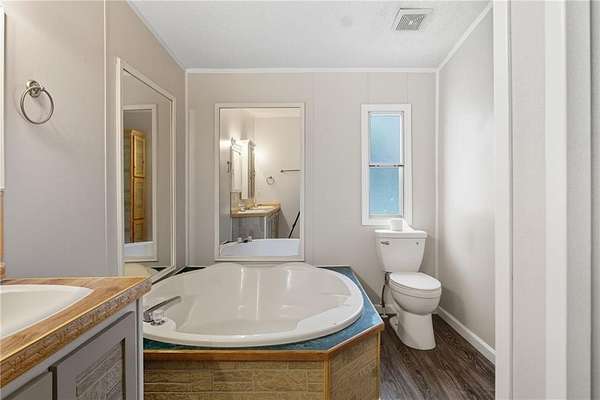 Welcome home to this spacious and well-maintained 2000 model mobile home on a permanent foundation, perfectly situated on 2.73 acres of pristine, level land in Canton, Georgia of Cherokee County. Offering approximately 1,900 sq. ft. of comfortable living space, this property combines peaceful country living with convenient access to everything you need. This 3-bedroom, 2-bath home features a desirable split-bedroom floor plan, with the primary suite privately located on one side and secondary bedrooms on the other. The open-concept layout includes a large kitchen with ample cabinetry, spacious dining area, and two separate living rooms--ideal for both everyday living and entertaining.