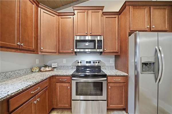 OPEN HOUSE 2-28-2026 - 2-4 PM WELCOME HOME! This well-kept home is located in the peaceful and desirable Town Lake Estates neighborhood - Talking Rock, GA. The main living area impresses with soaring cathedral ceilings and a cozy gas fireplace, creating an inviting and spacious atmosphere perfect for family gatherings or quiet evenings at home. Offering five bedrooms and three bathrooms, it also includes a flexible bonus room and a dedicated storage area to suit various needs. The main kitchen is equipped with modern stainless-steel appliances, while luxury vinyl plank (LVP) flooring enhances both the primary living spaces and the basement. Bedrooms feature comfortable carpeting. The basement, which is fully finished, comes with its own kitchen outfitted with a stainless refrigerator and dishwasher, plus a brand-new HVAC system that ensures comfort throughout the year. Outdoors, you'll find ample deck space-both open and screened-ideal for unwinding or hosting gatherings. Set in a picturesque mountain area, the property provides serene views and a calm atmosphere. Other highlights include a detached two-car garage and a quiet, inviting community.