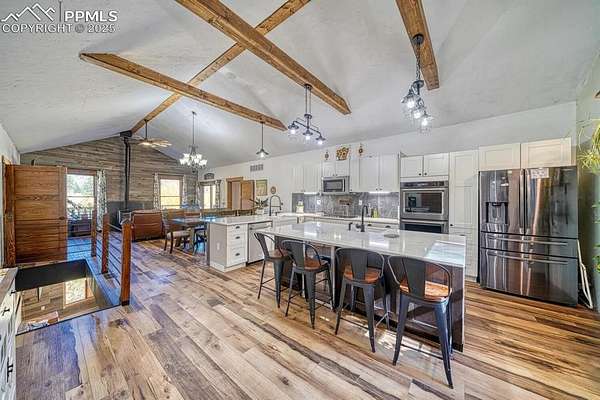Tucked among whispering pines on 5.2 acres, this mountain estate is where refined living meets the wild beauty of Colorado. Just 10 minutes from the charming town of Westcliffe, the home feels like it was placed exactly where it belongs-cradled by trees, framed by commanding views of the Sangre de Cristo Mountains, and designed to welcome both quiet mornings and lively gatherings with equal grace. As you follow the drive through the trees, the home slowly emerges-like a well-kept secret. Step inside, and the main level opens in a warm embrace. A wood stove anchors the living room, the kind that turns chilly mountain evenings into scenes from a storybook. The kitchen is the true heart of the home. Quartz countertops gleam against custom cabinetry. A deep farmhouse sink and double wall ovens stand ready for holiday feasts and weekend baking marathons, while an eat-in island invites conversation as meals come together. Each of the two main-level bedrooms is its own private retreat, complete with ensuite bathrooms. A 1/2 bath in the living area ensures guests feel right at home. Downstairs, the walk-out basement offers a world of possibilities. The family room is anchored by a pellet stove that radiates steady warmth, creating a relaxed space for game nights, movie marathons, or a cozy library nook. A third bedroom with an ensuite bath offers additional accommodations. A touch of finish work remains-a rare opportunity to infuse your personal vision without the weight of a full renovation. Step outside, and the landscape takes the lead. Towering pines filter soft breezes, creating a natural sense of calm. The Sangres rise in the distance, dramatic and unwavering, changing their colors with the shifting light. Morning coffee becomes a ritual. Evenings stretch long on the deck as the last golden light slips behind the peaks, and the night sky-untouched by city glare-takes its turn to dazzle. Call today to schedule a tour and see if this is your next home!