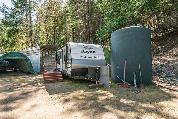 Escape to your own Mountain Retreat -28.25 acres with creek frontage, gushing spring, and panoramic views and so close to the Trinity River. Discover peace and privacy on the stunning 28.25 acres property offering year round creek, breath -taking Mountain views, and a host of valuable amenities. Nestled in nature this land boast a 12 X 60 manufactured home with a 200 sf addition under a Ramada, featuring a 2 bedroom and 1 bathroom- with a dog door and dog kennel attached for your furry friends, perfect for full time living or a serene getaway. Enjoy a bunkhouse with cozy wood stove & a sleeping loft, two covered carports, two 16 X 30 RV metal carports, an abundant of water resources- including a gushing spring, two 5,000 gallon water tanks, two 4,000 gallon water tanks. Take in the quite Escape to your own Mountain Retreat! 28.25 acres with creek frontage, gushing spring, and panoramic views and so close to the Trinity River. Discover peace and privacy on the stunning 28.25 acres property offering year round creek, breath-taking Mountain views, and a host of valuable amenities. Nestled in nature this land boast a 12 X 60 manufactured home with a 200 sf addition under a Ramada, featuring a 2 bedroom and 1 bathroom- with a dog door and dog kennel attached for your furry friends, perfect for fulltime living or a serene getaway. Enjoy a bunkhouse with cozy wood stove & a sleeping loft, two covered carports, two 16 X 30 RV metal carports, an abundance of water resources including a gushing spring, two 5,000 gallon water tanks & two 4,000 gallon water tanks. Take in the quite beauty of your surroundings from any corner of the land, whether relaxing or tending to a garden. If you're seeking self-sufficiency, a mountain escape, or a homesteader's paradise, this property delivers it all.