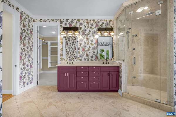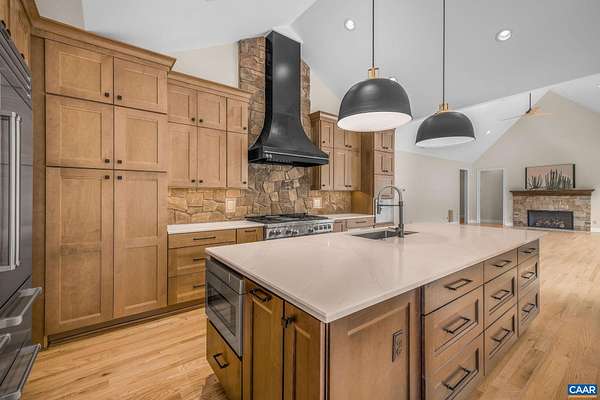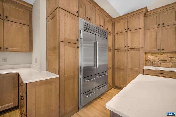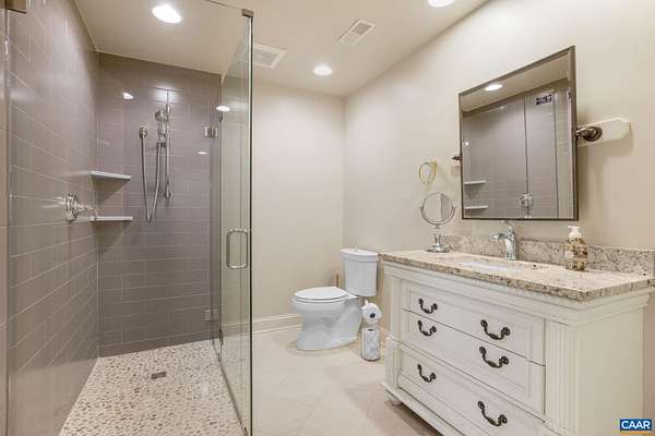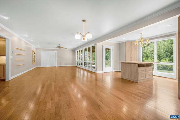 Set on nearly 4 peaceful, gated acres just minutes from town, Keswick, local vineyards, and renowned restaurants, this private retreat is designed for effortless main-level living. The heart of the home is the stunning, renovated chef's kitchen, featuring double islands, abundant cabinetry, luxury appliances, beverage drawers, and thoughtful details throughout--ideal for gathering and entertaining. The kitchen opens to a light-filled family room with a stone fireplace and access to the serene back deck and screened porch, perfect for taking in the quiet natural setting. The main-level primary suite is a true sanctuary, boasting a spa-like bathroom with a freestanding tub, a custom enclosed shower/steam room and full size stackable washer/dryer. Two additional bedrooms, two full baths, and a spacious mud/laundry room complete the main level. A three-car garage adds convenience. The walk-out lower level includes a living area and flex space with built-ins, a private guest suite with full bath, a fitness area, and a second kitchen area, perfect for multigenerational living or long-term guests. Ample unfinished storage space and a 4th garage bay provide plenty of storage. Purchasers eligible for a 25% discount to the Club at Glenmore.