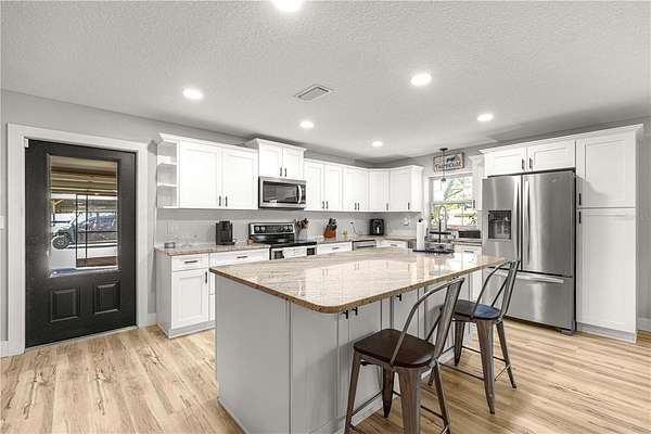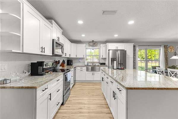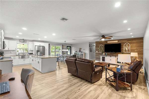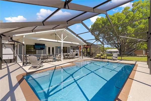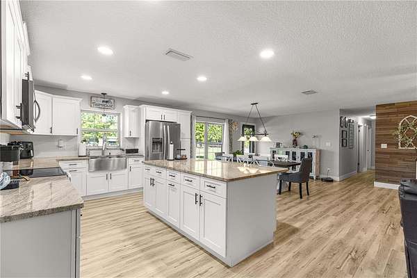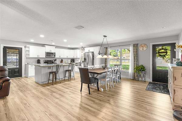 Welcome to the home you don’t want to miss! Zoned A-1, this property offers the perfect blend of country living and modern comfort — bring your mini-farm dreams to life while enjoying a beautifully updated home. Additional 3+ acres are available right behind the property for even more space to expand or add another home and have your own family compound. As you enter through the electric gate, you’ll be greeted by lush green space and open pasture. The 3-bedroom, 2-bath, 2-car garage block home features a brick façade for timeless curb appeal. Inside, an open-concept layout provides generous space for entertaining. The stylishly updated kitchen boasts white shaker cabinets, granite countertops, stainless steel appliances, subway tile backsplash, and a large island with bar seating. The adjoining dining area easily accommodates a large table for family and friends. The living room features a warm accent wall with wood detailing, and the massive den/flex room adds even more space to gather and enjoy. Step through the French doors to your nearly new saltwater pool with a screened enclosure — complete with a beach area, water jets, and a covered gazebo area for grilling. The primary suite offers comfort and style with carpet flooring, a ceiling fan, a walk-in closet, and an updated ensuite bath featuring a double-sink vanity and a glass-enclosed tiled shower. Two additional bedrooms provide ideal accommodations for guests, along with a second full bath with a tub/shower combo. The two-car garage includes the laundry area and water softener complete with a screened front. Outside, you’ll find an RV-ready carport with power and water, a full-sized basketball court, and a fenced pasture ready for animals or expansion. The backyard has a chain-link fence for your pets and a shed houses the well and includes some storage. With plenty of open space and thoughtful upgrades, this property offers endless possibilities for the lifestyle you’ve been dreaming of. Roof and HVAC 2022. Schedule your private showing today — this one won’t last!