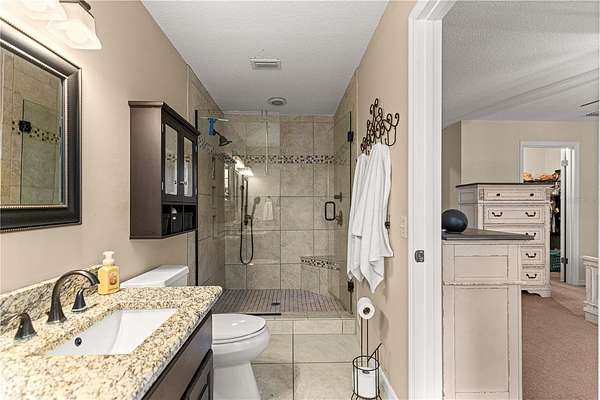 - Ceiling Fans(s), Open Floorplan, Primary Bedroom Main Floor, Solid Surface Counters, Thermostat, Walk-In Closet(s)