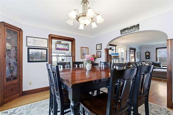 - Ceiling Fans, Crown Molding, Eat In Kitchen, Entrance Foyer, High Ceilings, Kitchen Island, Natural Woodwork