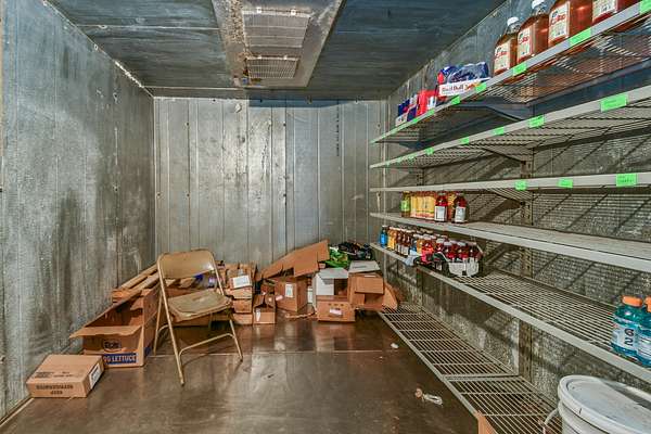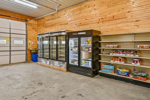 A 40x50 shop features a garage door and entry door, with half operating as an established wholesale fruit business. The insulated store side includes a concrete floor, heat & AC, and a commercially inspected kitchen area (equipment negotiable). The warehouse side offers two refrigerated trailers, a 10x12 walk-in cooler, garage door, and entry door for efficient distribution.