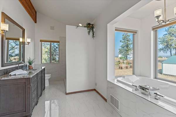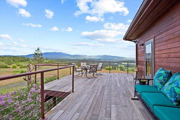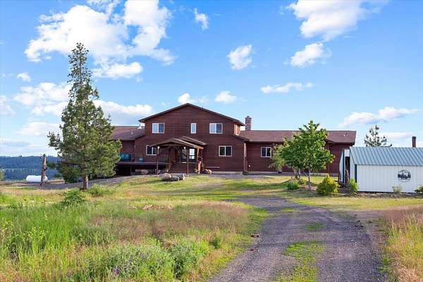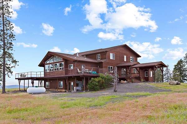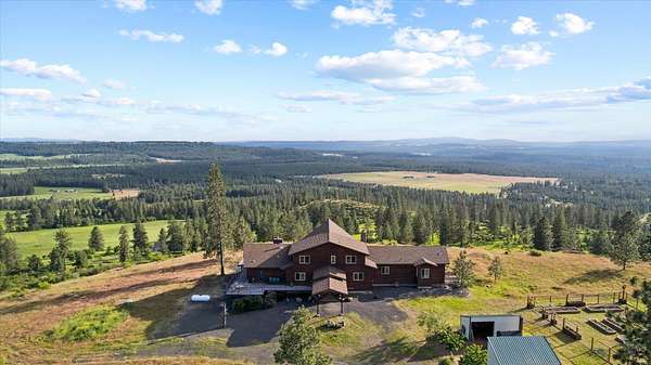 Panoramic views, and ultimate privacy await atop this private 20 acre Chattaroy Bluff Estate. Nestled a 1/2 mile from the county road, and 35 minutes north of Downtown Spokane, the Bluff at Chattaroy features 8700 square feet of luxury North West living. The main floor and second story offer abundant natural light, including 8 bedrooms, 5 bathrooms and 2 half baths. Panoramic 360 degrees views from every corner of the estate. Built with the entertainer in mind the expansive chefs kitchen has a 6 burner wolf stove with 2 ovens, granite, two sinks, a fireplace, and access to the deck. Floor to ceiling windows anchor the great room with a wood and stone fireplace. Views to the south of Green Bluff, Williams Valley, North Spokane, and Lookout Mountain. Double doors welcome you into the 475 sqft primary suite with vaulted ceilings, access to the deck, a spa style bathroom, and walk in closet. The extremely efficient estate features in floor radiant heating, a whole house generator, a 45x55 garden and a 50x60 shop.
