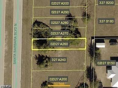 Great Commercial parcel for future Building. 5 consecutive commercial lots for $29,900 5 contiguous commercial lots totaling approximately 125 x 125 (+/-15,680 SF / +/-0.36 acres) with direct frontage on highly traveled Santa Barbara Blvd N in the growing North Cape Coral corridor. All 5 parcels are sold together as a package - Lots 26, 27, 28, 29 & 30, Block 2327A, Unit 36. Zoned C-1, Future Land Use designated Commercial Professional (CP). Not in a flood zone. No HOA. Cash only. APN's: 25-43-23-C1-02327.A260 through .A300. This is a rare opportunity to acquire a contiguous 5-lot commercial assemblage on Santa Barbara Blvd - one of Cape Coral's primary north-south commercial corridors. With 125 feet of road frontage and +/-125 feet of depth, the combined footprint is suitable for a small professional office building, medical or dental office, personal services facility, or long-term land bank position in one of Southwest Florida's fastest-growing cities. Buyer to verify all utility availability, assessments, and permitted uses with the City of Cape Coral.