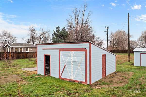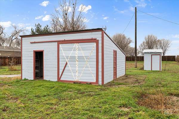 Acreage ranchette including two separate parcels totaling 3.88 acres, with a large shop & backing to a tree canopied irrigation canal with water rights. This charming, remodeled farmhouse offers space, flexibility, and the kind of Idaho lifestyle that is what Idaho is all about. The property includes an established orchard and open land ready for animals, gardens, or future expansion. The standout feature is the oversized 38x48 shop/garage, complete with electricity, a wood-burning stove, and freshly poured concrete floors perfect for projects, storage, equipment, or hobbies of all kinds. Multiple additional outbuildings add even more versatility and storage options. Inside, the home offers two inviting living areas, anchored by a cozy wood-burning stove and abundant storage throughout. A full remodel in 2017 brought peace of mind with a new roof, windows, & updates in electrical, plumbing, insulation, cabinetry, & HVAC, plus new carpet and fresh exterior paint in 2024. Privacy hedges and a fence line the road, creating a peaceful, tucked-away feeling while still allowing room to grow, build, or invest thanks to the dual-lot configuration. With two parcels, a substantial shop, water rights, and room to breathe, this property delivers rare opportunity whether you're looking for a private retreat, functional acreage, or long-term value with endless potential.