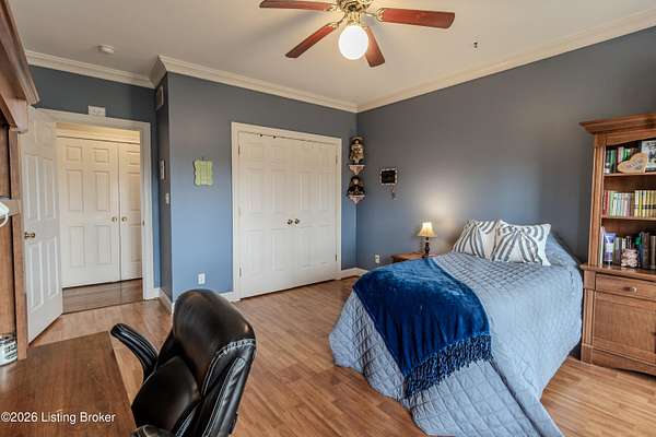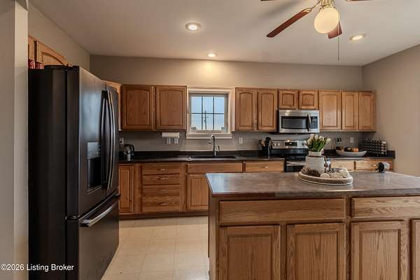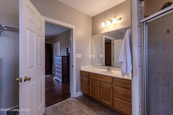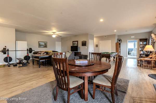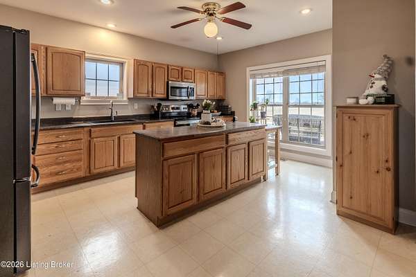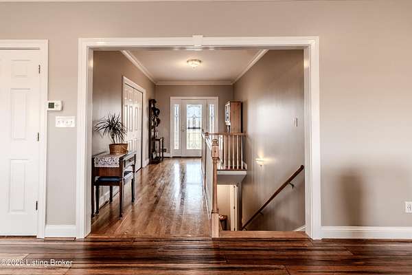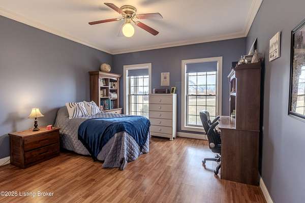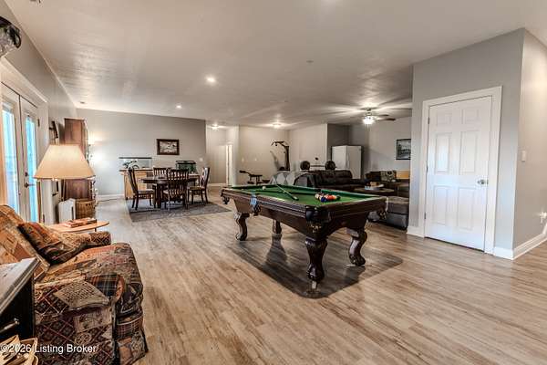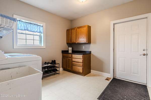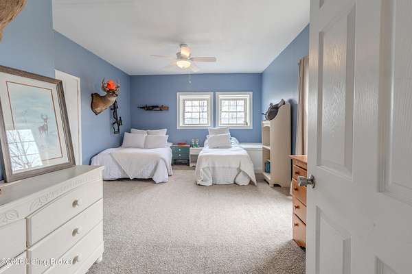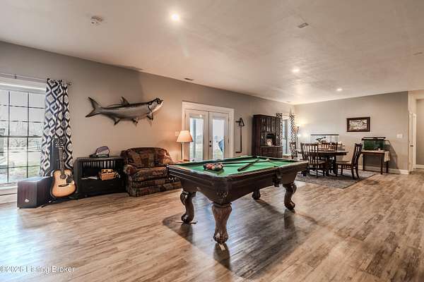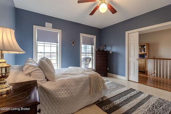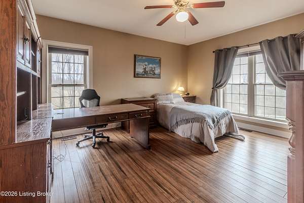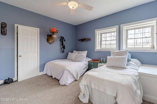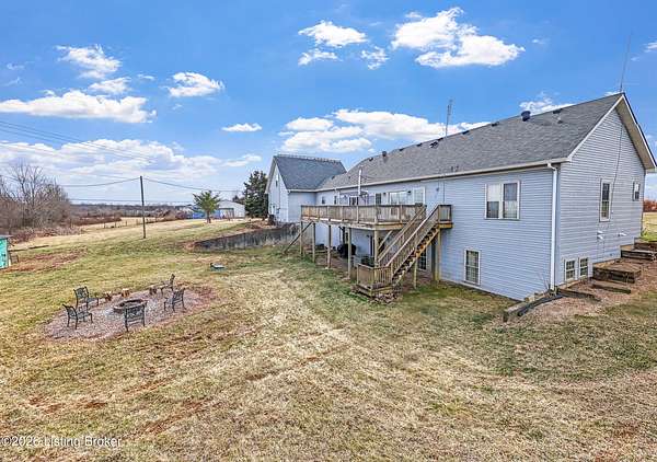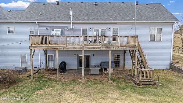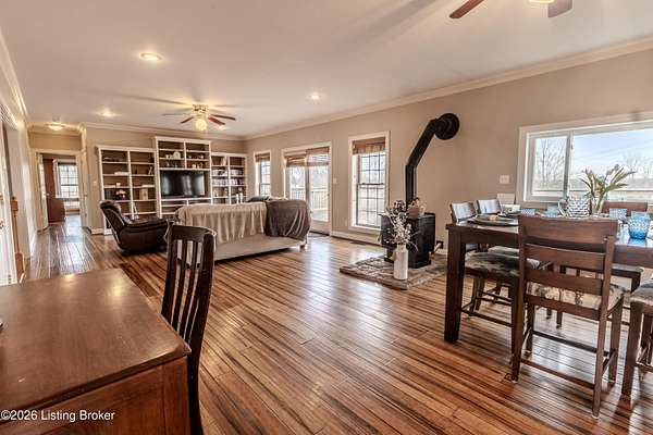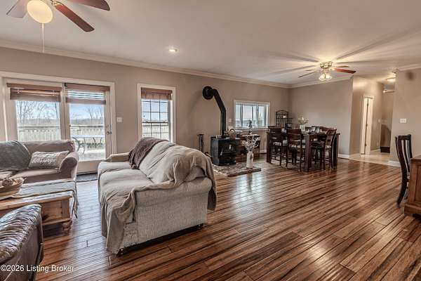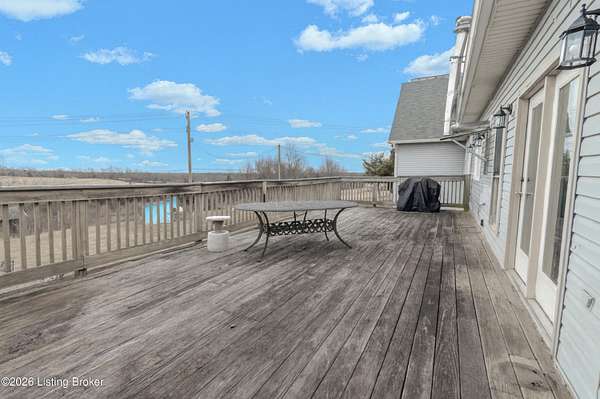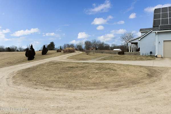 This exceptional cape cod style walkout ranch on over 33 acres offers far more than you ever expected-and everything you didn't know you needed. With over 4200 square feet of finished living space, this five-bedroom, three-full-bath home is thoughtfully designed for both everyday living and large gatherings. Energy efficiency is a standout feature, with geothermal heating and solar panels significantly reducing utility costs. A covered front porch welcomes you inside, where an open-concept family room and dining area flow seamlessly into the kitchen-ideal for entertaining. Built-in bookcases frame the media center in the family room, adding both function and charm. Off the family room is a deck that extends the length of the home, perfect for the amazing views overlooking the back 33 acres. A first-floor bedroom with dual access offers excellent flexibility and is well-suited for in-law living or accessibility needs. The primary suite is a private retreat featuring a spacious walk-in closet and an en-suite bath with separate double vanities. A third first-floor bedroom is tucked away, generously sized for oversized furniture, and offers peaceful views of the front acreage. A full bath on the main level connects to an oversized laundry and mudroom with exceptional storage. The walkout lower level is equally impressive, featuring a massive second family room with windows overlooking the rear of the property and direct access to a private patio. This space easily accommodates a dining area, media room, exercise space, or all three. Two additional bedrooms, each with walk-in closets, and a full bath complete the finished lower level. Storage is abundant throughout the home, including a second large pantry near the stairwell, two distinct unfinished basement spaces, oversized bedroom closets, and extensive mudroom storage. The garage offers ample room for vehicles and equipment, plus a substantial walk-up attic for even more storage. The land itself is extraordinary: a former cattle pasture, a fishing pond at the entrance, a large outbuilding, former chicken coop, garden areas, and wooded acreageoffering endless possibilities for recreation, farming, or simply enjoying wide-open space. The 33 acres are complemented by an additional 5-acre parcel, deeded separately and available for purchase independently. Conveniently located just minutes from the highway and across from the entrance to the prestigious L'Esprit Estates, this ranch-style Cape Cod combines privacy, efficiency, and scale in a truly rare offering. All of this is ideally situated just off the I-71 corridor, right on the border of Oldham and Henry Countiesprivacy, convenience, and versatility in one remarkable property.