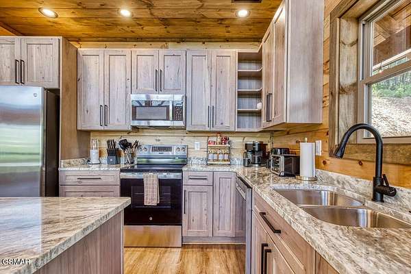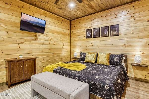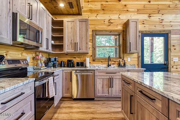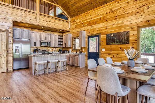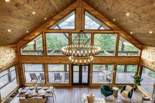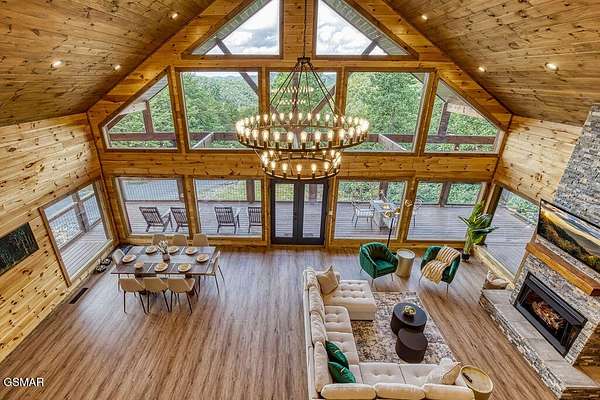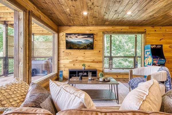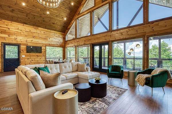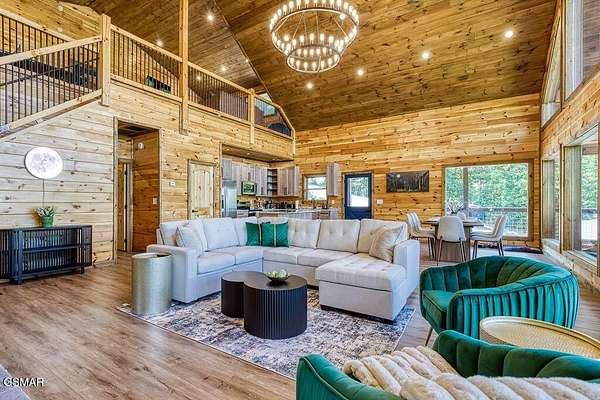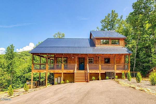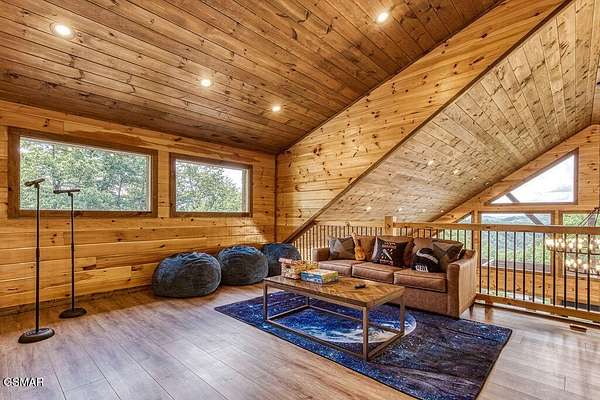 BRAND NEW AND READY FOR RENTAL! 3BR/2.5BA WITH BONUS ROOM, HUGE GAMEROOM, EXPANSIVE COVERED OUTDOOR SPACE, AND MOUNTAIN VIEWS! LUXURY CUSTOM BUILT MODERN RUSTIC CABIN WITH BREATHTAKING MOUNTAIN VIEWS AND SITS ON 3.89 ACRES WITH ROOM TO BUILD ANOTHER CABIN! INCOME PROJECTIONS OF $113,880 ONCE FURNISHED! Seller is offering a $35,000 furnishing allowance. This cabin can easily sleep up to 12! Interior features include luxury vinyl plank flooring, soaring vaulted ceilings, walls of glass, and tongue and groove interior. Open floorplan with a fully equipped kitchen with quartz countertops, stainless appliances, and an island. Eat in dining area with plenty of room to seat several. Living room with stone accented gas fireplace. Main level bedroom is a Master Suite with en suite bath with free standing tub, walk-in tiled shower, and a double sink vanity. You will also find a half bath on the main level. Oversized open loft perfect for a bunk room with games with its own balcony, or you could setup as an additional sleeping area. Step down to the lower level and you will find a huge great room perfect for a theater movie room and gameroom with its own wetbar. Two additional bedrooms are on the lower level as well with a walk out deck that steps into the useable yard with outdoor firepit and grilling area. Enjoy the multiple levels of wrap around covered decking with bubbling hot tub, plenty of room for outdoor seating and entertaining. Nice firepit area to sit and relax and enjoy the serene and peaceful setting. Plenty of parking. Great short-term rental, second home, or permanent residence! Located in a desirable subdivision with outdoor pavilion areas, community pool, and beautiful views! Only a short drive to Pigeon Forge, Dollywood, Gatlinburg, or Cades Cove nature loop. Must see! *CHECK OUT THE VIDEO AND 3D WALK THROUGH TOUR!