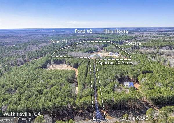 20 ACRES IN OCONEE COUNTY - 2 HOUSES 2 PONDS 2 WELLS - 2942 & 2944 Salem Road Looking to live in privacy with nature and beauty surrounding you? You have found it! When you turn off the paved road onto the half mile long driveway to your secluded home, you will feel the stress of the day melting away. As the rocking chair front porch of the main house comes into view, you will see the first of 2 stocked ponds situated by the main house. The main house has 4 Bedrooms, 3.5 bathrooms and 2 powder rooms. The Primary Bedroom on the main floor offers a clawfoot soaking tub, a separate shower and a large closet with new custom closet design. There is a large open living room, fireplace, dining room and gourmet kitchen on the main level. The kitchen has a huge island, walk-in pantry with bar refrigerator, and a gourmet 6 burner gas stove/oven. There is also a half bath on the main level in the hall adjacent to the living room. Upstairs hosts the other 3 bedrooms and the 2 full bathrooms and 2 powder rooms. One bathroom features a relaxing clawfoot soaking tub with separate shower, and the other bathroom has a large shower. The second level living room offers tons of flex space for a den and office, with several storage closets. This is a well-built custom house featuring hardwood floors throughout, true shiplap walls, stunning light features and many hardware finishes. The rear of the home offers a huge recently screened porch that runs the entire rear of the house. Enter this rear porch from sliding glass doors exiting the living room, and you will find a large space for dining/ entertaining. There is a brick, wood burning fireplace, space to mount a TV, and room to put a dining table and entertaining area. To the rear of the main home has a view of the second stocked pond and a view of the new carriage house. Enjoy the newly custom brick walkways and porch. The carriage house is brand new construction that has never been lived in. The carriage house features a 3 car garage and a living quarters on the second level. The smaller garage was designed with HVAC and a ceiling fan so it can be used as an home gym, art studio or work room year round. There is a half bath on the main level convenient to a large side grilling porch with hookups for propane if desired. The grilling porch also has a large outdoor deep sink for bathing pets or cleaning fish. On the second level of the carriage house is a perfect space for an in-law suite, a home for an adult child or for a rental apartment. There are 2 bedrooms and 1 full bathroom in the open space living quarters. The kitchen and den offer amazing views of the property and front pond. There is also a hook up for a washer and dryer. Wildlife abounds on this secluded property. The 2 ponds offer hours of family entertainment. You will find that deer, rabbits and turkey show up on a regular basis. Fenced garden on the property to have a mini farm. In addition, there is plenty of space to build a chicken coop for fresh eggs and space to build a barn for horses if that is desired. There is also a separate 10 x10 storage shed with a second well that could supply the water needs for the barn. You have not experienced the beauty and serenity of country living until you have had morning coffee on the front porch while watching the sunrise on the pond or family dinner on the screened back porch. Come see if it is the secluded, home sanctuary you have been waiting for.