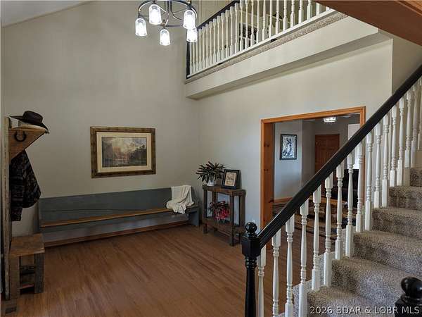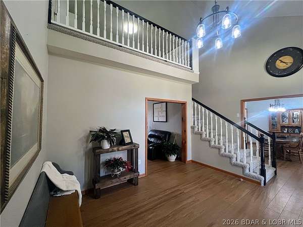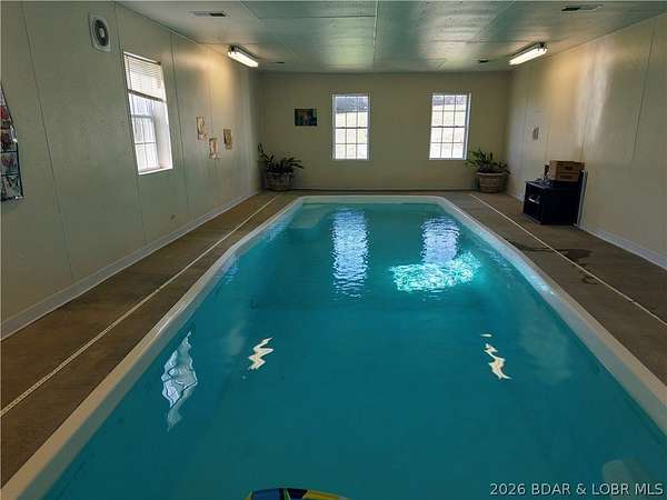 If you've been searching for the perfect mix of acreage and a home that truly stands out, this is it. Situated on 40 acres of open and wooded ground, the property offers endless opportunities for farming, recreation, hunting, or simply enjoying the privacy of country living. A pond and shop are already in place, making the land as functional as it is beautiful. Inside, a grand foyer with soaring ceilings and a stunning loft overlook welcomes you in. The open-concept layout flows into a formal dining area and spacious kitchen-perfect for everyday living and entertaining. Just off the living room, a deck overlooks the pond, creating the ideal spot for morning coffee or evening sunsets. A rare indoor pool off the kitchen offers year-round enjoyment. The main level features four bedrooms, including a primary suite with his-and-hers closets and a private washer and dryer hookup. The finished walk-out basement adds a second living area, full kitchen, and two non-conforming bedrooms-perfect for guests or multi-generational living.Recent updates include new flooring (2026), a 2023 roof, and geothermal heating for efficiency and comfort.