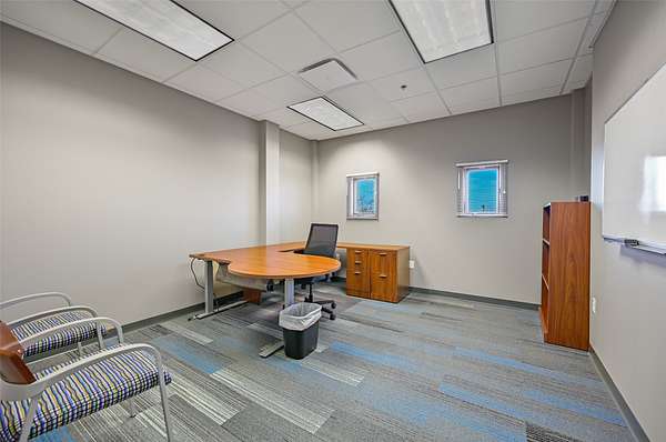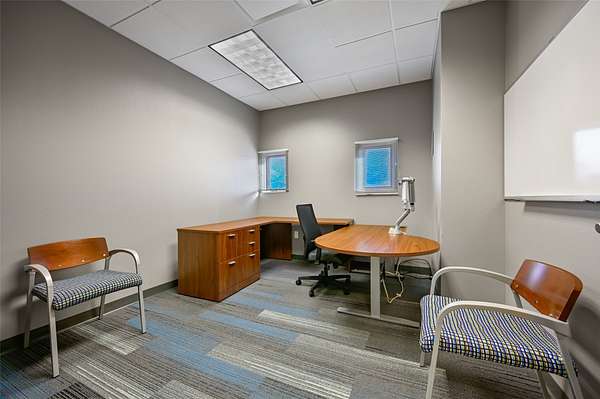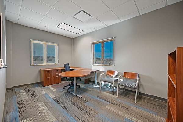 This Class A office suite offers a clean, professional environment ideal for medical or general office users. The space is fully furnished and features high-quality finishes throughout, creating a turnkey solution for a variety of businesses. The suite includes a welcoming reception and waiting area, generously sized private offices, well-appointed conference rooms, and a beautifully finished break room. Numerous windows provide excellent natural light, enhancing the overall workspace. Secure and professional entrance creates a safe setting for both staff and clients. Conveniently located near I-25 and the Rail Runner, this two-story building offers easy access, dedicated street-level parking, and a central location. This is an excellent opportunity for businesses seeking a well-maintained, functional office space in a highly accessible area.