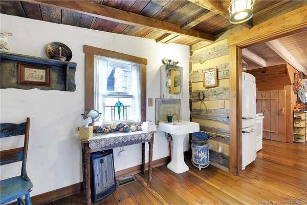 If you're looking for a ultimate log cabin retreat then look no more. Our cabin is a unique, small, authentic 19th century log home, nestled among cedar trees while overlooking a pond. The cabin offers the perfect retreat away from the hustle and bustle of everyday life. The log cabin has been completely restored with modern conveniences yet still retains all the rustic charm of an era gone by. Set on 30-/+ private scenic acres. This intimate retreat overlooks the beautiful backdrop of rolling ridges with expansive views of southern Indiana's Jefferson county. Refresh your body and spirit in the serene atmosphere of Francine's Log Cabin. Listed BELOW Appraisal Value.