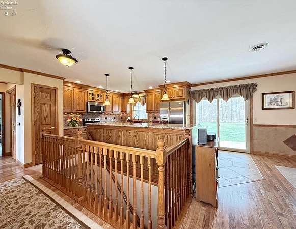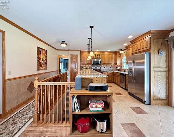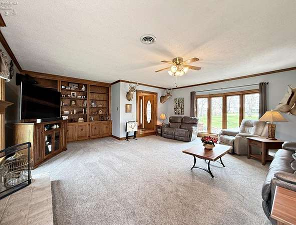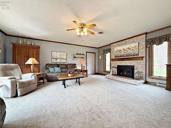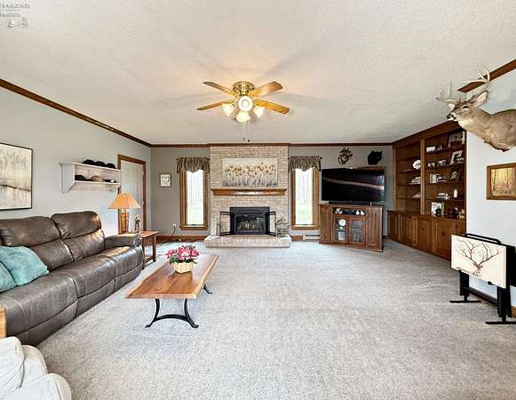 Exceptional quality is evident throughout this 3 BR, 2 BA brick ranch, which was thoughtfully maintained and updated at every turn! Set on 1.6 +/- acres with a wooded view, offering a country feel while still close to everyday conveniences. The open kitchen features granite counters, custom soft-close cabinetry, ceramic backsplash and flooring, plus an eating area. Both baths offer heated ceramic floors. Spacious living room with gas fireplace and brick hearth, and newer Anderson windows. The finished basement includes a family room with a freestanding gas stove, full bath, and ample storage. Additional highlights include 6-panel doors, beautiful custom trim, and ample work space in the garage. Outdoor features include landscaping by Mohawk Nursery, an 18x12 patio and 16x12 shed. Updates: roof (2021), gutters with guards (2022), water tank (2022), landscaping (2023), radon system (2025). Seller had property PRE-INSPECTED and inspection is available for review.