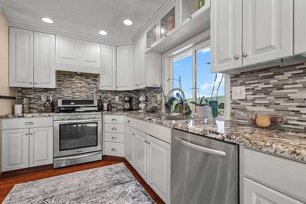 FHA LOAN! Experience serene country living with this beautiful 2-bed, 2-bath home set on over 20 acres of land with breathtaking panoramic VIEWS. Enjoy peace and privacy behind a gated entrance, complemented by OWNED SOLAR for energy efficiency. The open floor plan features large windows that fill the home with natural light and frame the stunning landscape. The gorgeous kitchen boasts granite counters, a tile backsplash, stainless steel appliances, and a spacious center prep island with storage and a breakfast bar. Outdoor living shines with a large front porch and additional side and back porches-perfect for relaxing or entertaining while taking in the scenery. Additional highlights include RV parking with 30-amp hookups and a garden area. A perfect blend of comfort, style, and self-sufficiency-all just waiting for you to call it home.