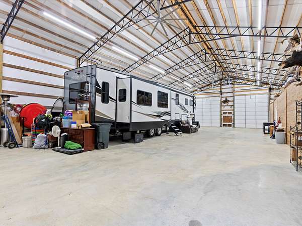 This 20-acre property has a 56'x84' Barndominium with 1239 sf of living space. The 2BR/1BA living area has tile flooring throughout and is climate-controlled by mini split units. The kitchen has granite countertops and backsplashes. The living room has an electric fireplace. The open garage is equipped with two 12'x14' garage doors, ideal for storing recreational vehicles. There is also a 21'x42' lean-to located at the rear of the structure. The land is a combination of open green fields and wooded sections, interconnected by trails. Limestone Creek flows through the property, attracting a diverse array of wildlife. This rural retreat is conveniently located near I-65, Hwy 251, and Hwy 53.